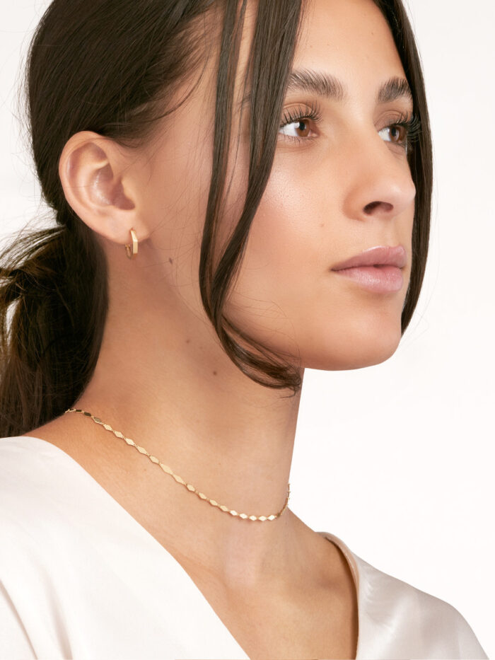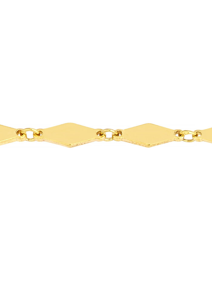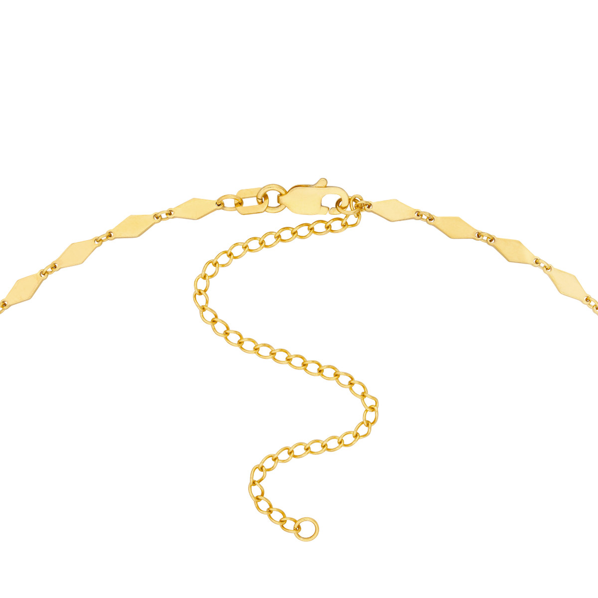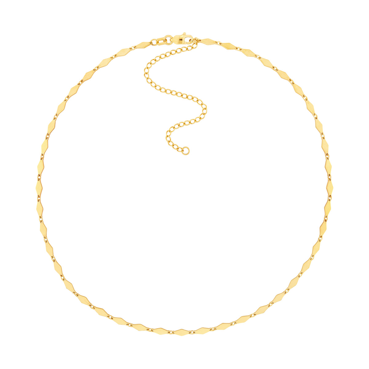 Make a statement with the dazzling Mirror Diamond Shape Link Choker Necklace. Crafted in luxurious 14K yellow gold, this choker features a unique design with mirror-like diamond-shaped links. The adjustable 3-inch extender ensures a perfect fit. Securely fastened with a lobster clasp, this choker adds a touch of elegance and sophistication to any outfit.