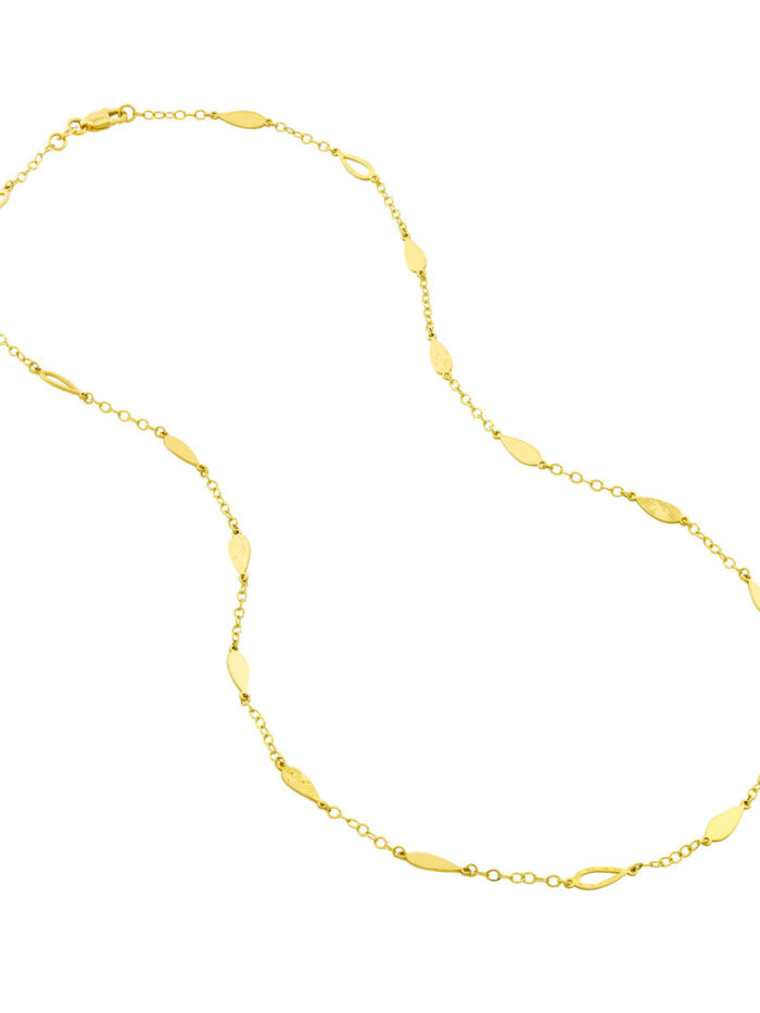 Embrace a touch of retro charm with this unique Mix Tear Drop Station Double Curb Necklace. Crafted in lustrous 14K yellow gold, the necklace features eye-catching tear drop stations interspersed along a classic double curb chain, creating a vintage-inspired look with modern elegance. The secure lobster closure ensures a comfortable and reliable fit. The 18-inch length is perfect for layering or wearing solo, making it a versatile piece to add a touch of nostalgia to your style.