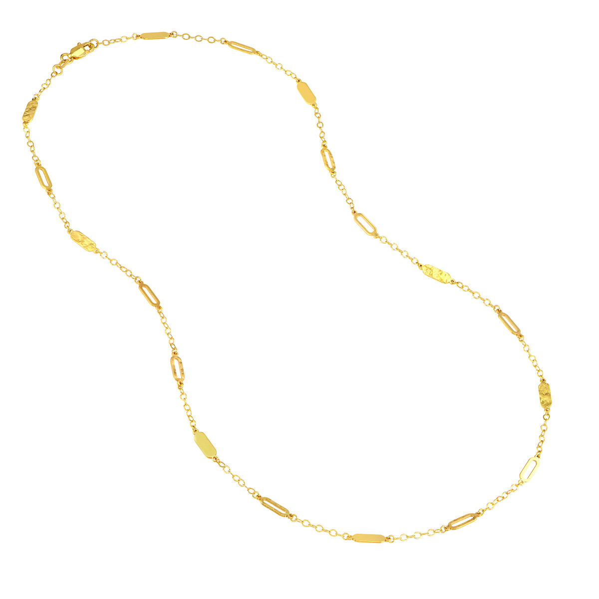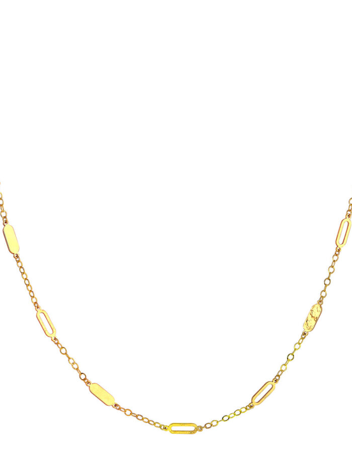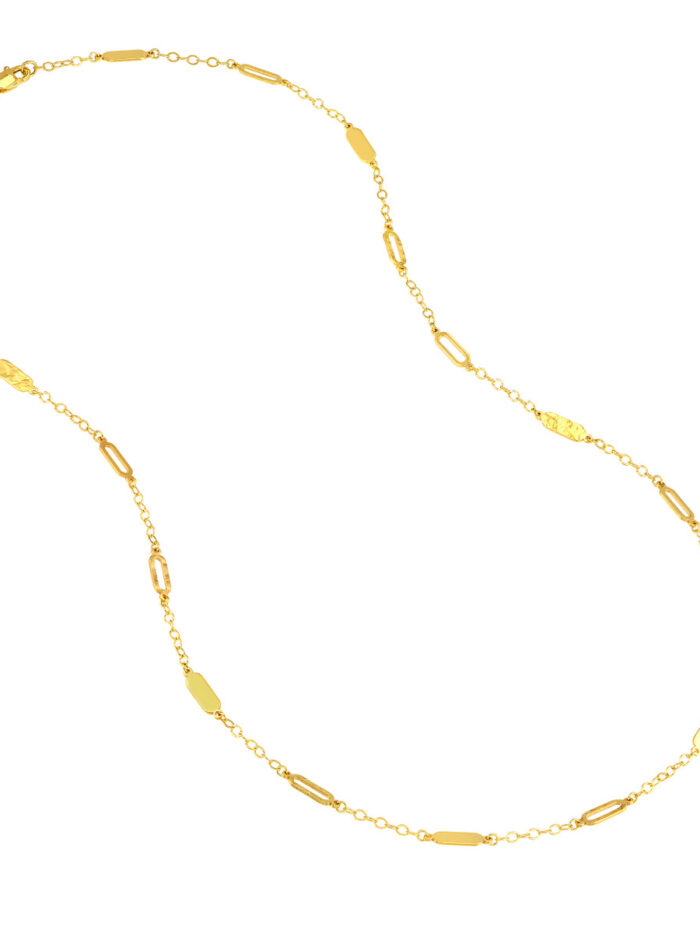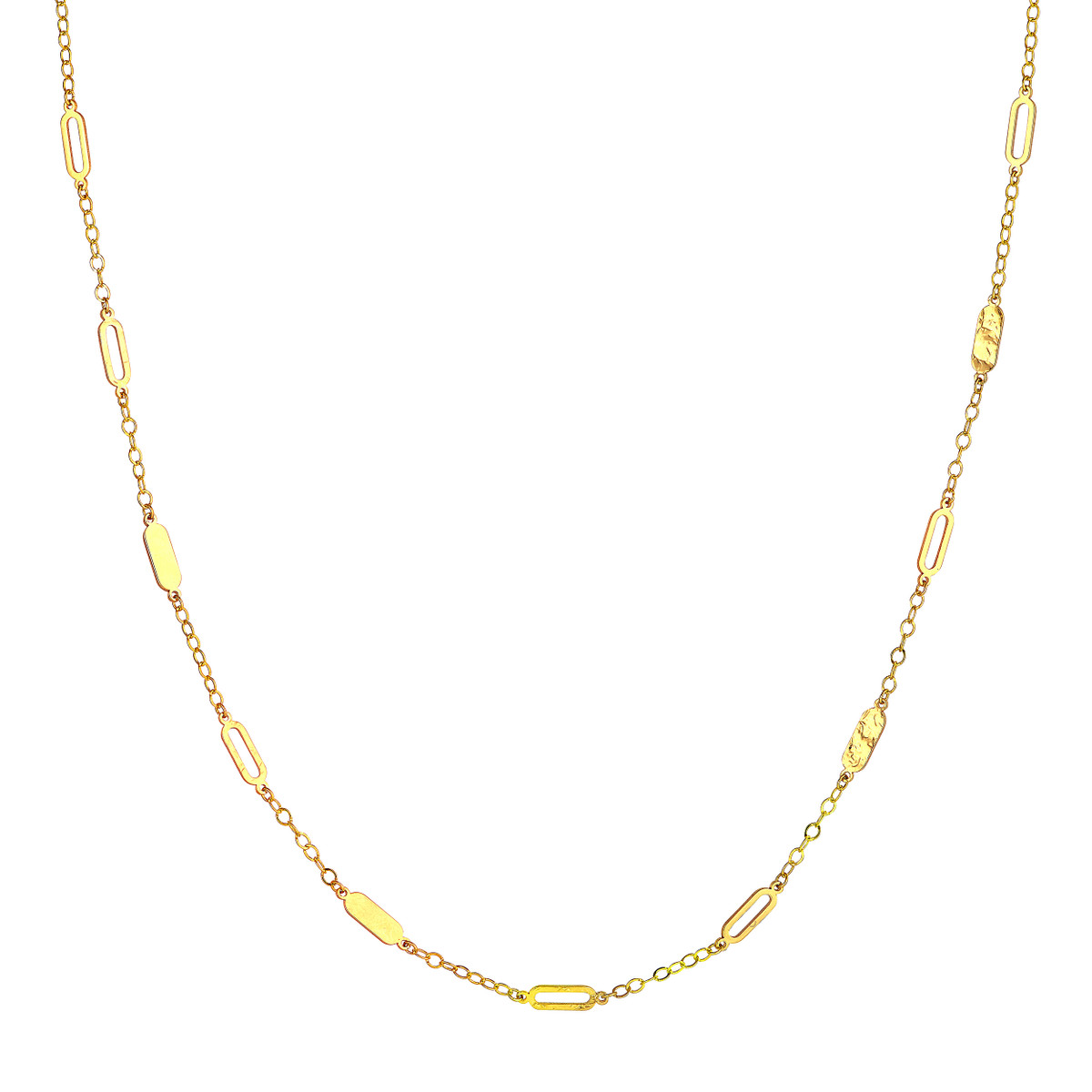 Make a statement with this captivating mixed oval station curb chain necklace. Crafted from lustrous 14K yellow gold, the necklace features a mix of open and solid oval stations, creating a unique and eye-catching design. The sturdy curb chain adds strength and durability. A timeless piece that effortlessly elevates any outfit.