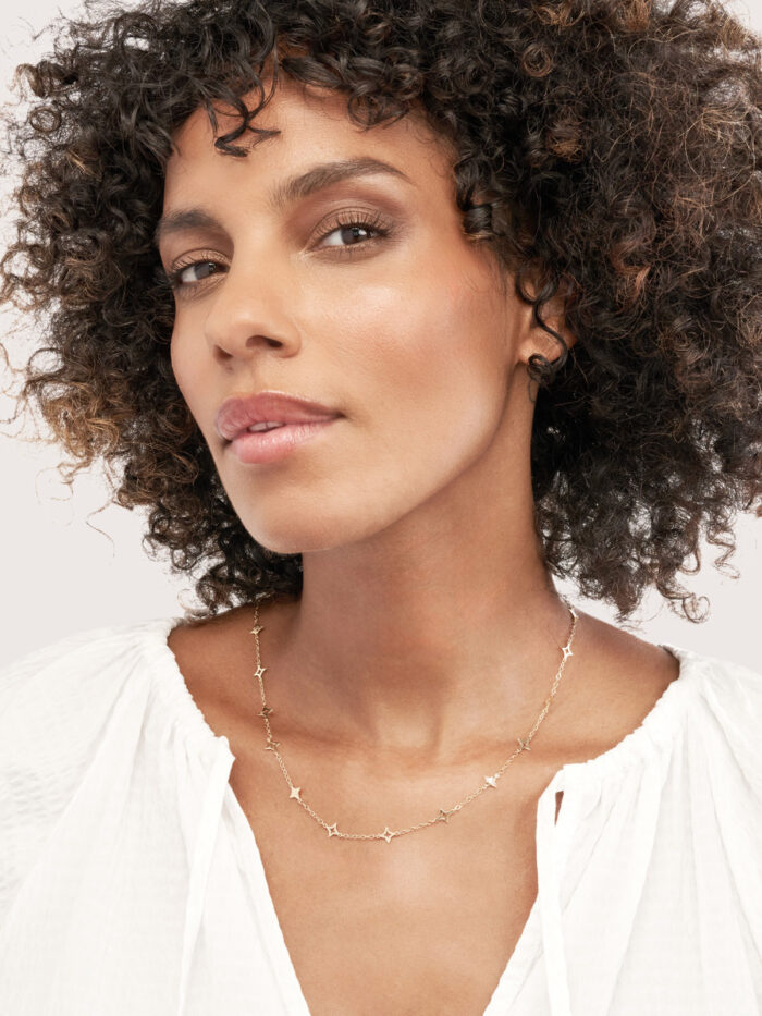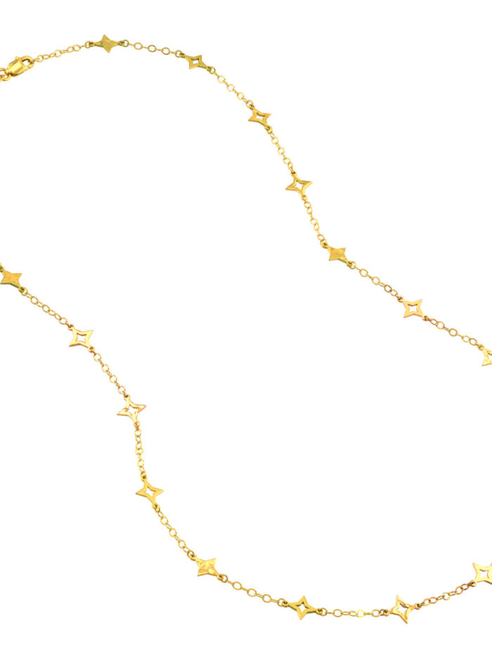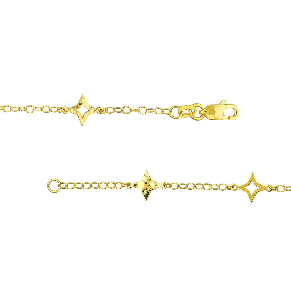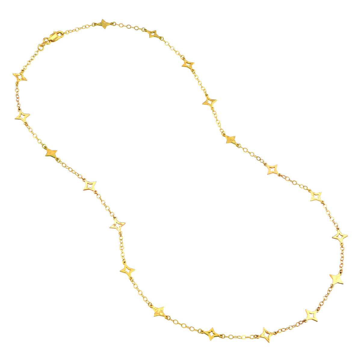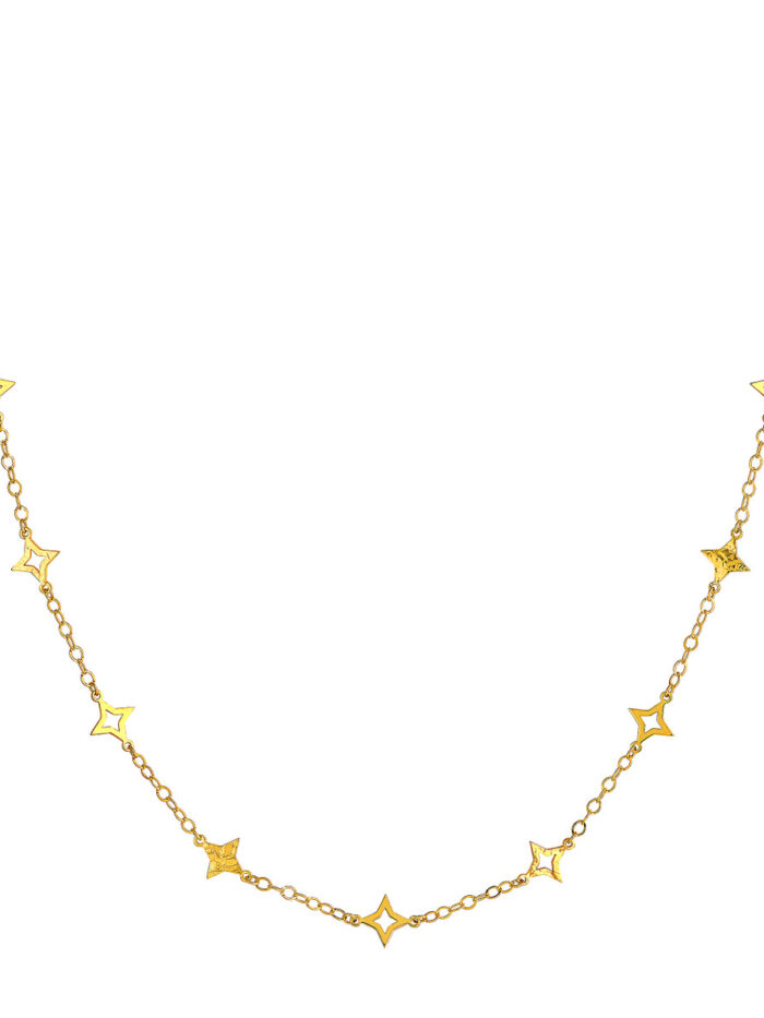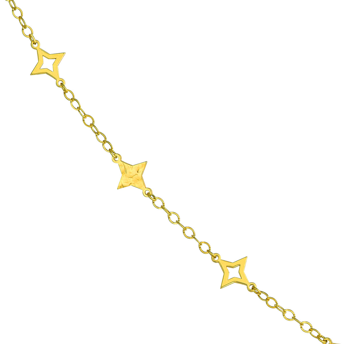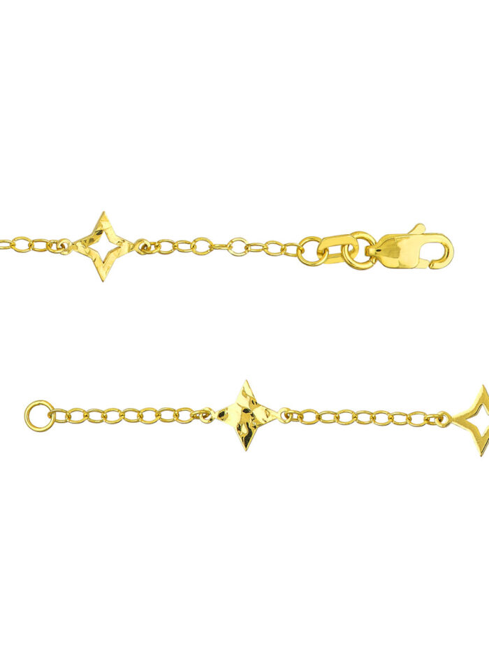 Make a statement with this eye-catching Mixed Star Station Curb Chain Necklace. Crafted in lustrous 14K yellow gold, the necklace features a blend of open and solid star stations interspersed along a classic curb chain, adding a touch of modern elegance. The secure lobster closure ensures a comfortable and reliable fit. The 18-inch length is perfect for layering or wearing solo, making it a versatile piece to enhance any look.