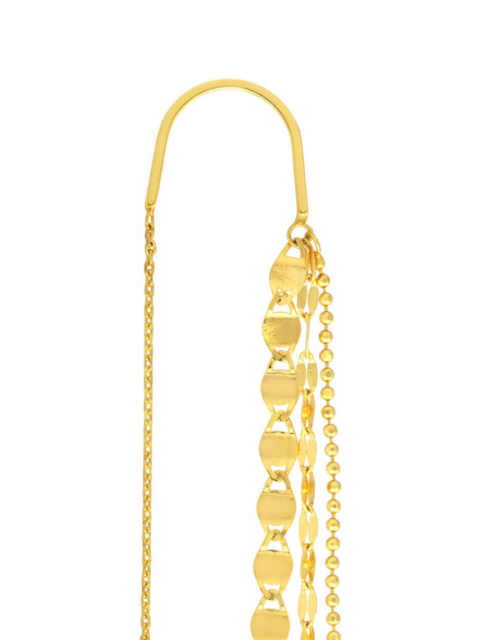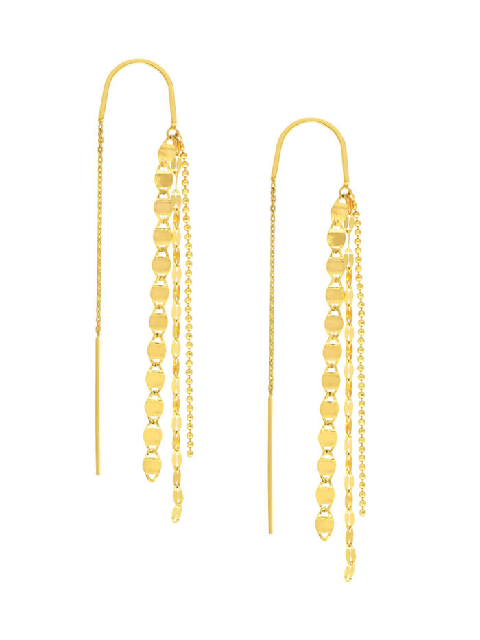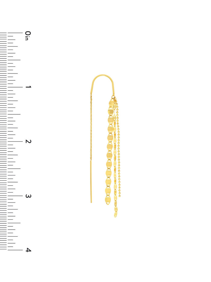 Elevate your look with these dazzling multi-chain dangle threader earrings. Crafted in shimmering 14K yellow gold, these earrings feature a unique design with multiple chains that create a captivating, layered effect. Wear them to add a touch of glamour to any outfit.