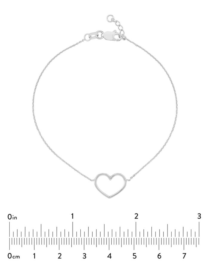 Open Heart Adjustable Bracelet – 14K White Gold – 7.5 Inch – by Dazyle