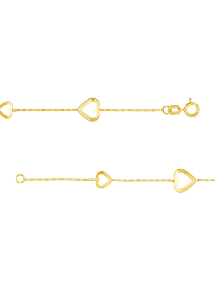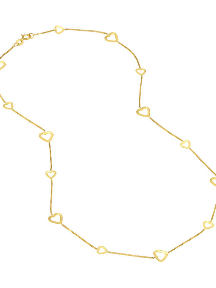 Express your timeless love with this elegant open heart pendant necklace crafted in 14K yellow gold. The delicate open heart design symbolizes enduring affection, while the secure box chain ensures a comfortable and stylish wear. With its adjustable length, you can customize the fit perfectly to your preference.