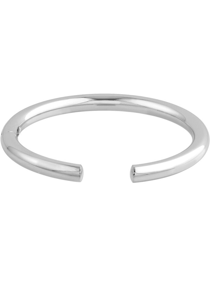 Elevate your style with this chic Open Polished Bangle Bracelet crafted from 14K White Gold. Measuring 58x50mm, this bangle features a sleek and polished design that seamlessly complements any outfit. The open bangle design offers a timeless elegance, making it a versatile piece for everyday wear.