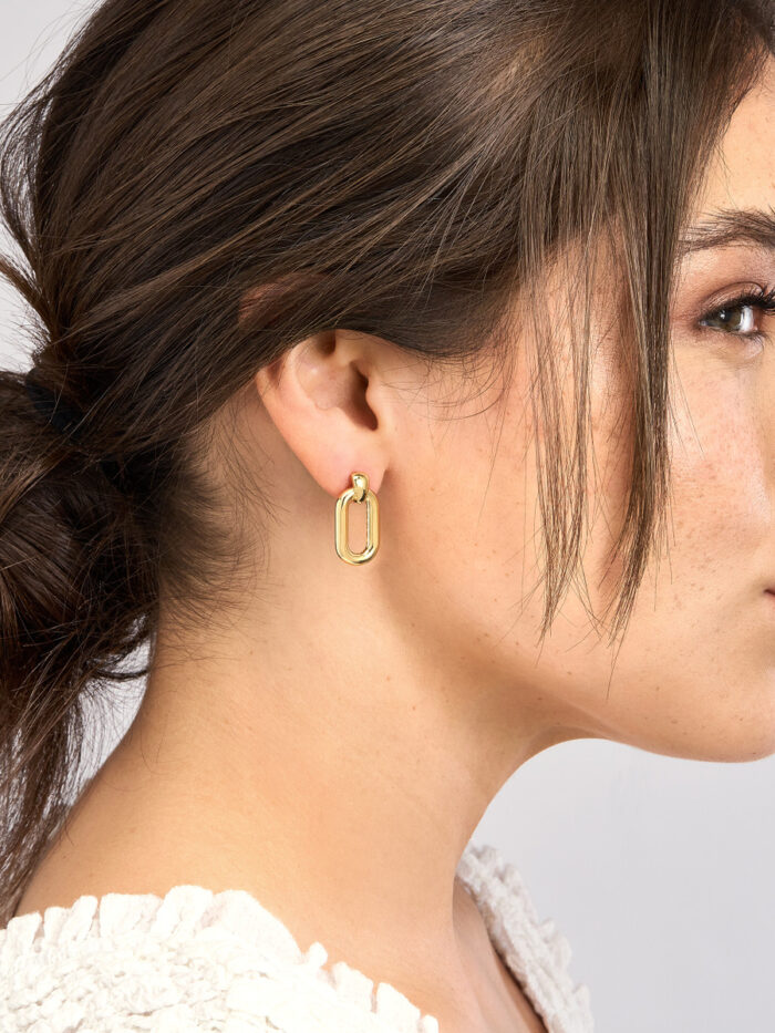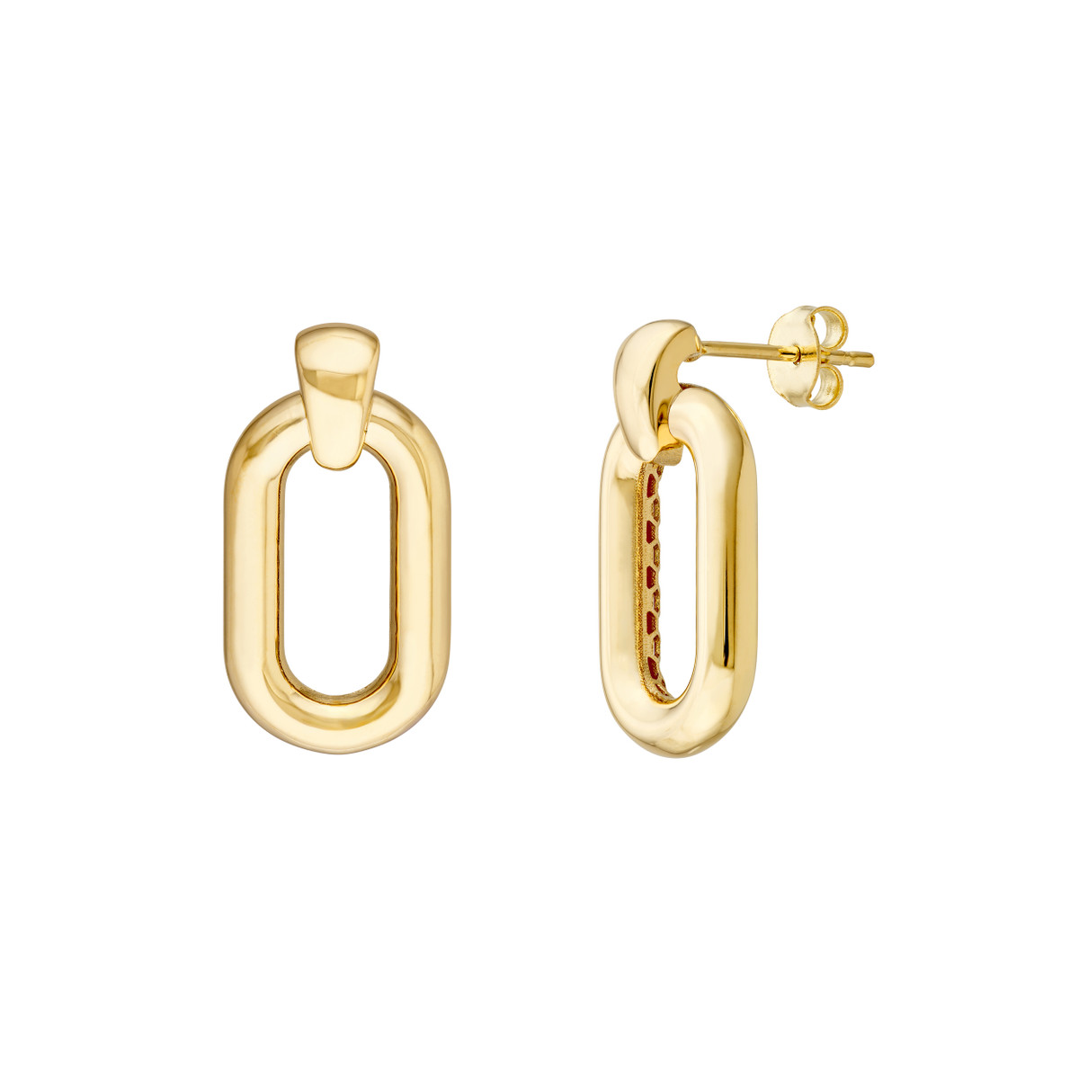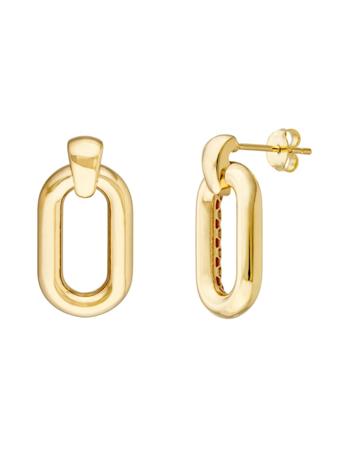 Add a touch of timeless elegance to your ear stack with these beautiful Oval Door Knocker Hoop Earrings. Crafted in gleaming 14K yellow gold, these earrings feature a unique oval door knocker shape that dangles gracefully. The secure post & nut closure ensures a comfortable and secure fit.