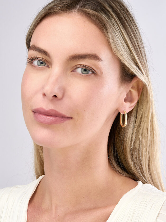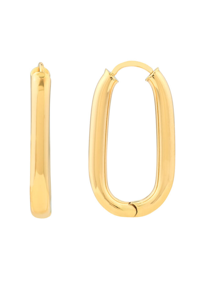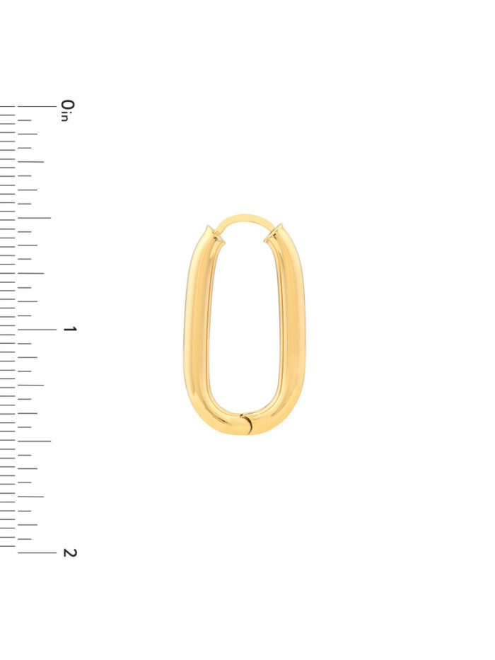 Small but mighty, these 25.1mm oval round hoop earrings are the perfect way to add a subtle touch of elegance to your look. Crafted from gleaming 14K yellow gold, these hoops are versatile enough to wear alone or stack with other earrings for a more personalized style. The secure hinge back closure ensures comfortable wear all day long.