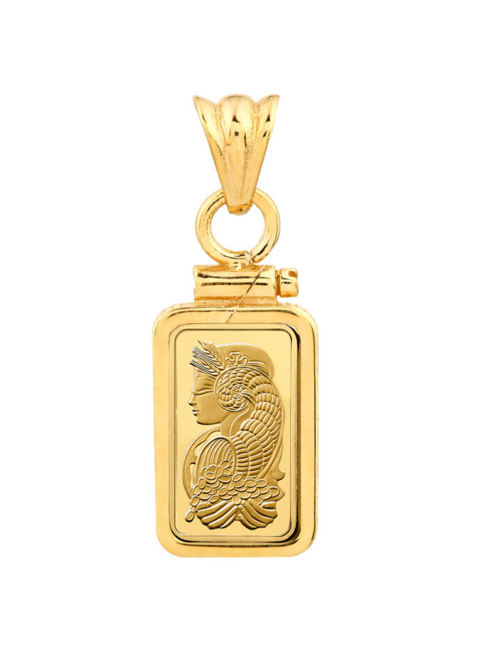 Celebrate your Pamp Suisse Lady Fortuna coin in style with our beautiful 14K Yellow Gold Screw Top Coin Bezel. This bezel is designed to securely hold a 1 gram coin, perfect for showcasing your treasured collectible. The screw top closure ensures a safe and secure fit, while the classic bezel design adds a touch of timeless elegance. Add your favourite chain for a complete and stunning look. Coin not included.