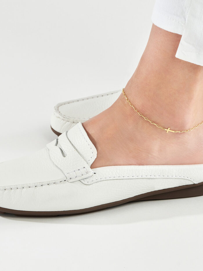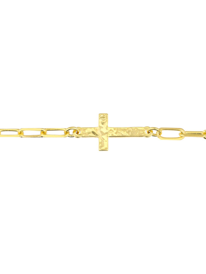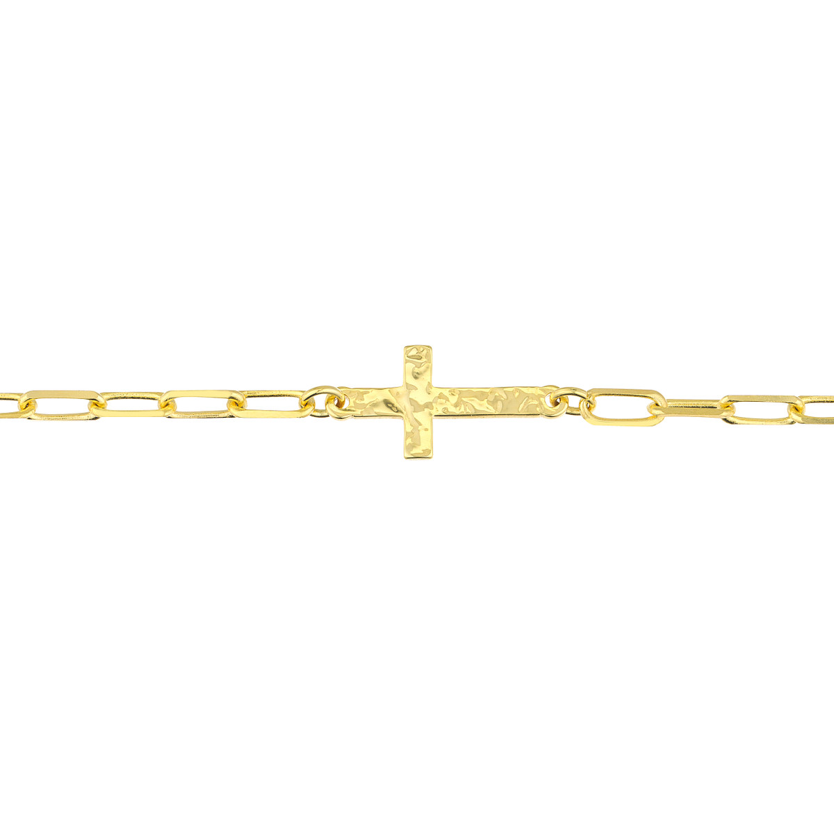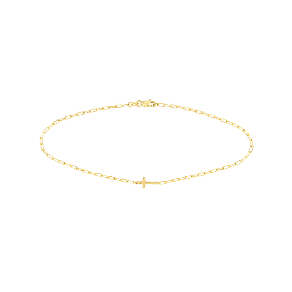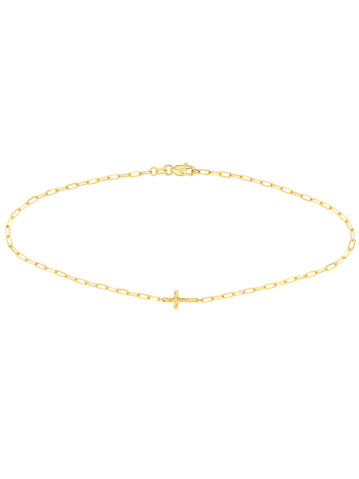 Make a statement with the Paper Clip Anklet with Cross. This unique anklet features a hammered texture cross pendant and a delicate paper clip chain crafted from lustrous 14K Yellow Gold. The 10-inch length adds a touch of understated elegance to your look. Whether you’re enjoying a day at the beach or dressing up for a special occasion, this anklet is a stylish and sophisticated choice.