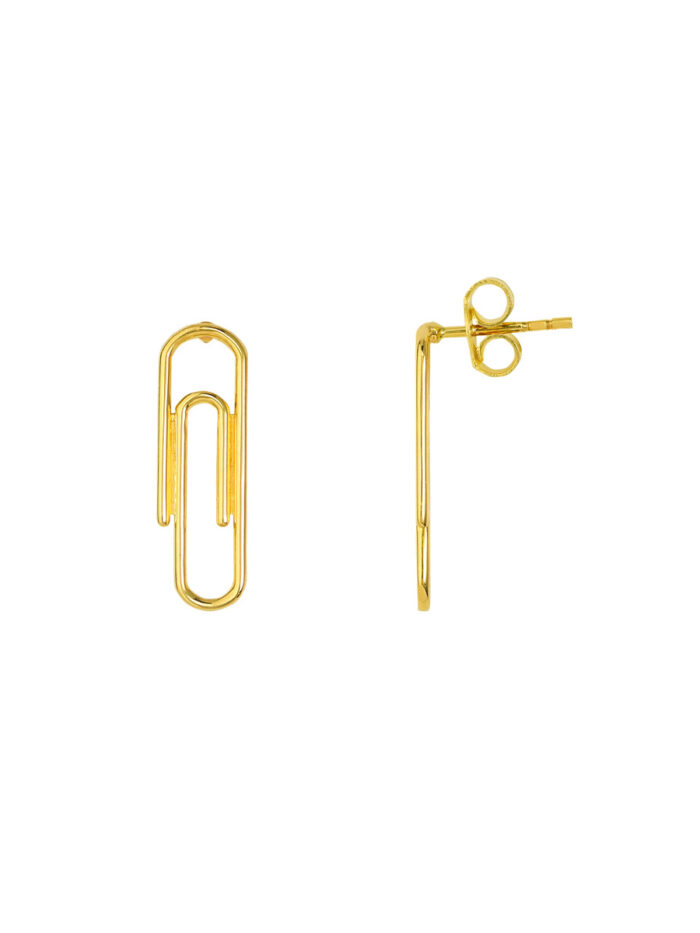 Make a statement with these effortlessly chic Paper Clip Stud Earrings. Crafted from gleaming 14K yellow gold, these earrings capture the essence of modern style with their minimalist paperclip design. Perfect for everyday wear or to elevate your evening look, these earrings are sure to turn heads.