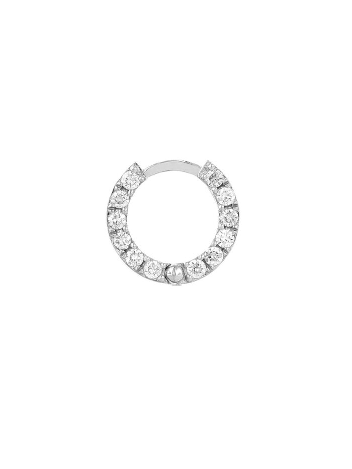 Elevate your style with these dazzling 14K white gold pave diamond hoop earrings. Featuring a seamless row of sparkling diamonds, these 10mm hoops effortlessly add a touch of luxury to any outfit. The secure snap-lock clasp ensures comfortable wear throughout the day.