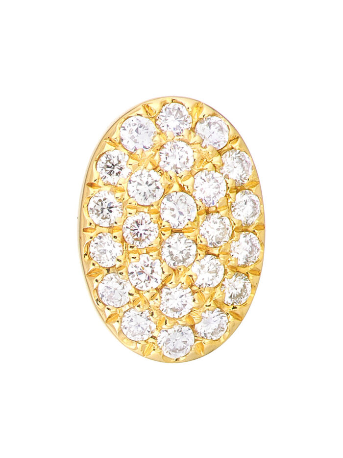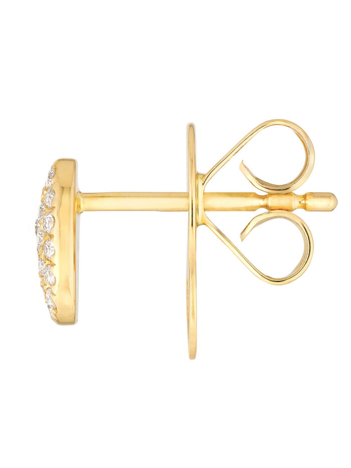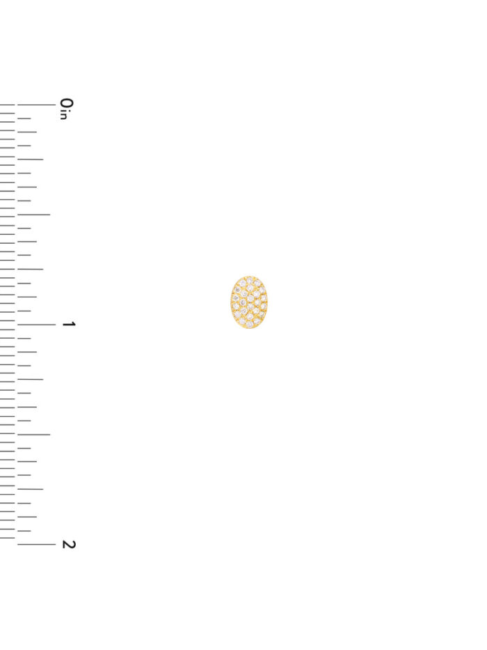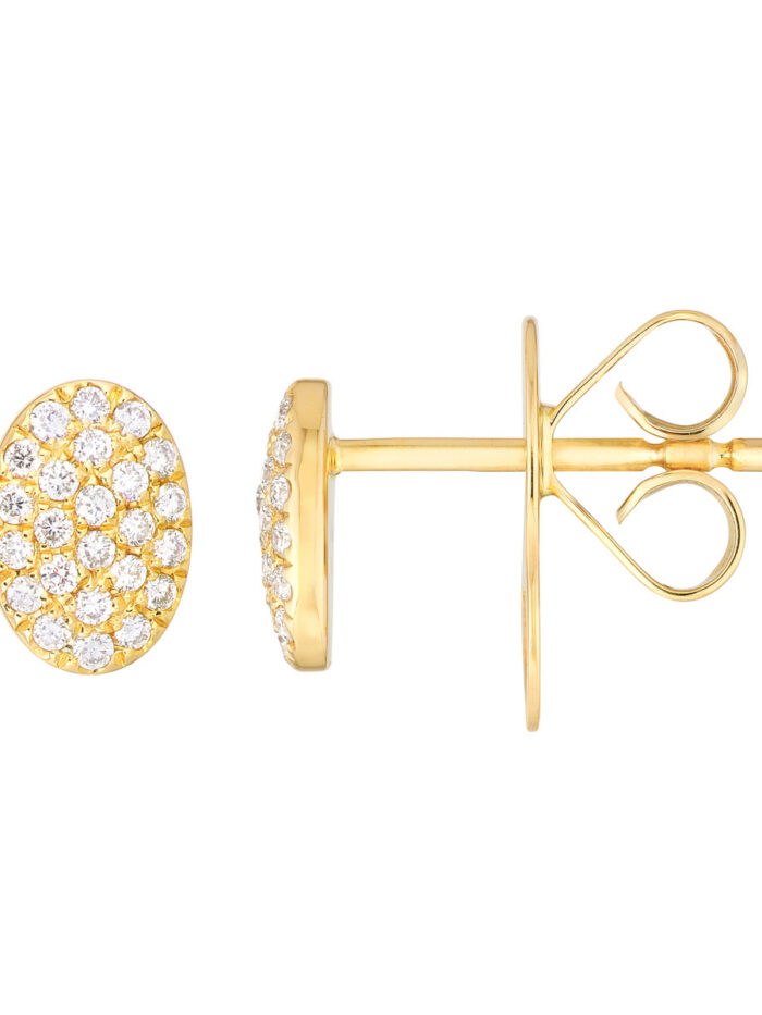 Enhance your ear stack with these exquisite oval pave diamond stud earrings. Crafted in lustrous 14K yellow gold, these earrings feature a sophisticated scattering of 1/6 carat diamonds, adding a touch of refined brilliance to your look. The classic oval cut enhances the sparkle, creating a captivating and elegant glow. The secure post & nut closure ensures comfortable wear throughout the day.