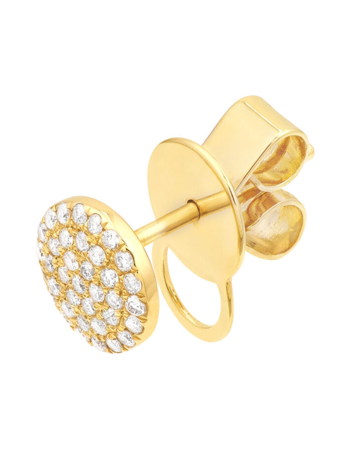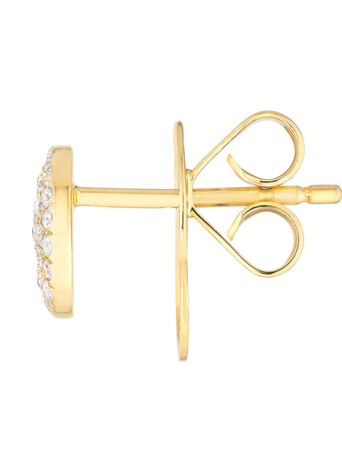 Add a touch of timeless elegance to your look with these classic pave diamond stud earrings. Set in gleaming 14K yellow gold, these earrings feature a delicate scattering of 1/5 carat diamonds, creating a brilliant and eye-catching sparkle. The secure post & nut closure ensures a comfortable and confident wear, perfect for everyday elegance or special occasions.