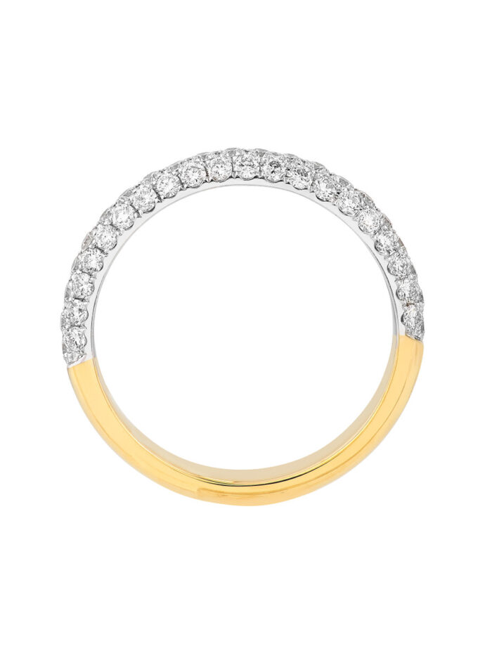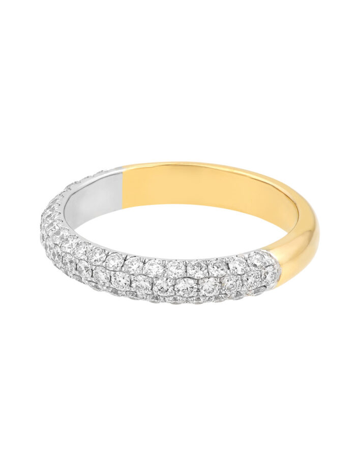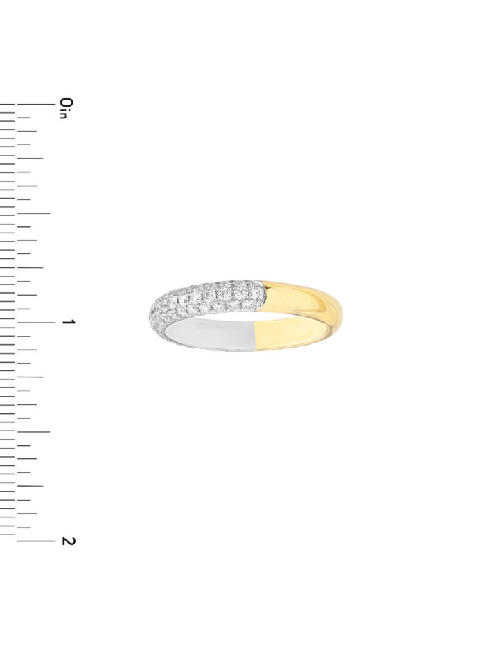 Elevate your ring stack with the ultimate in sparkle and sophistication! This Pave Diamond Stackable Band features a breathtaking 7/8tcw of diamonds, meticulously set halfway around the band. Crafted in a blend of lustrous 14K yellow and white gold, this band adds a touch of glamour and refinement to any finger.