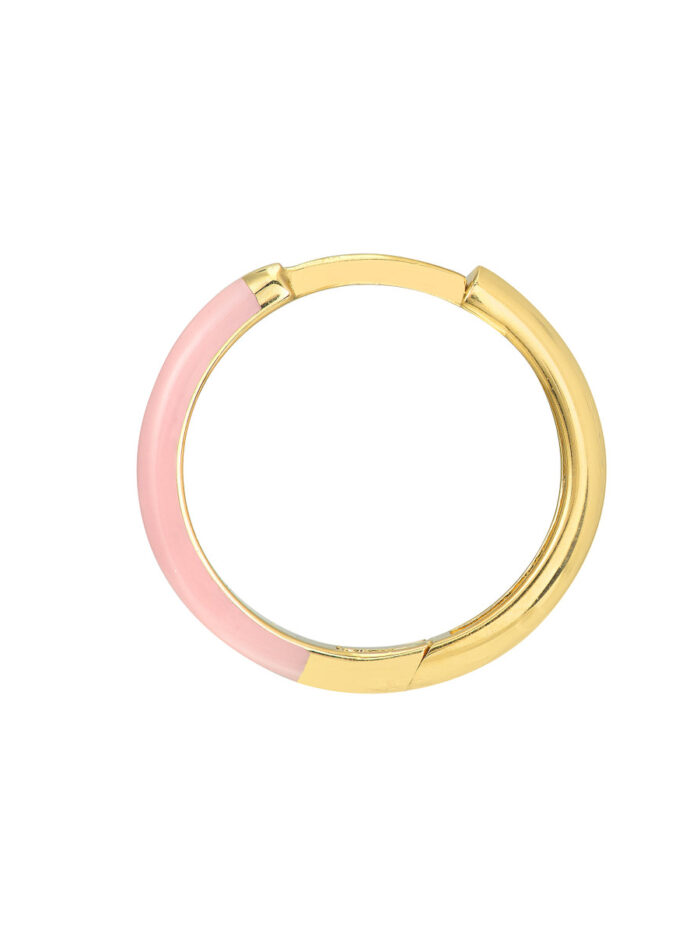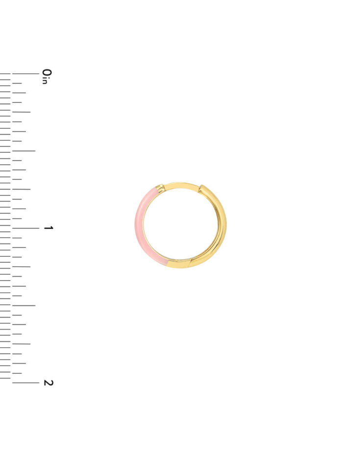 Add a touch of playful charm to your look with these adorable Pink Enamel 1/2 Polished Hoops. Crafted in beautiful 14K yellow gold, these small hoops feature a delicate pink enamel finish that adds a pop of color. Wear them alone or stack them with other earrings for a personalized touch.