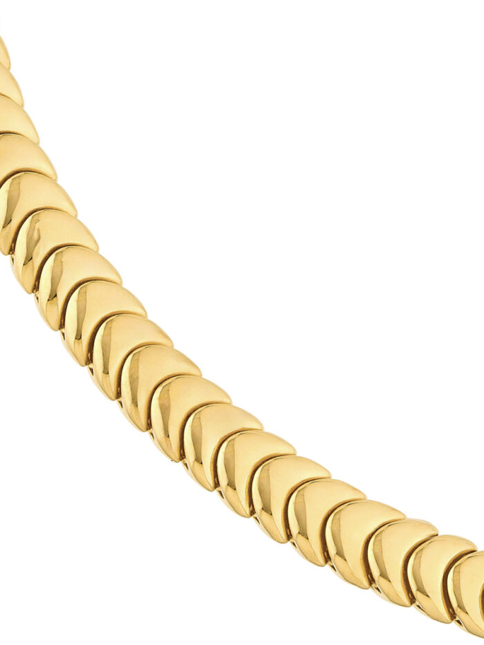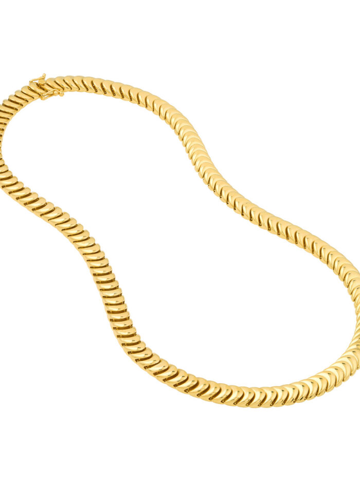 Elevate your style with this stunning polished 14K yellow gold caterpillar chain. The intricate design of the caterpillar links creates a bold and eye-catching look. This solid chain secures comfortably with a reliable snap-lock clasp. Measuring 18 inches in length, it’s the perfect size to wear everyday or to dress up a special occasion. Crafted from luxurious 14K yellow gold, this chain is a timeless investment piece that will complement any outfit.
