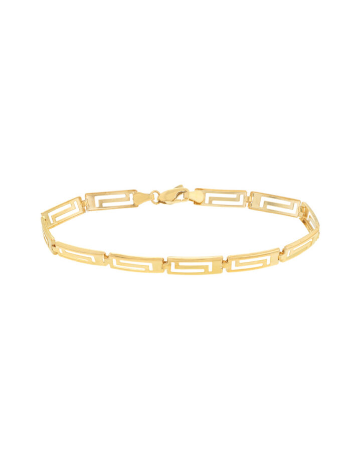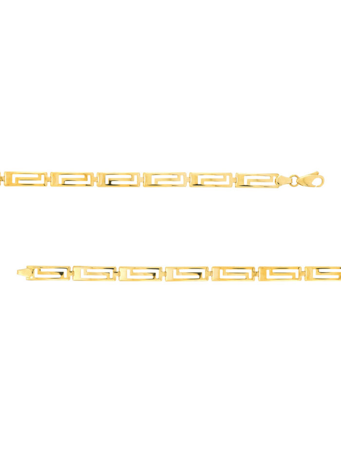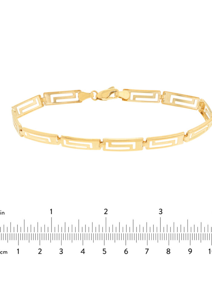 Embrace timeless elegance with this polished Greek key bracelet. Crafted from lustrous 14K yellow gold, this bracelet features a classic Greek key pattern along a sturdy Cuban chain. Its polished finish adds a touch of sophistication, making it a versatile accessory for any occasion. At 7.75 inches, it’s the perfect length for a stylish and comfortable fit.