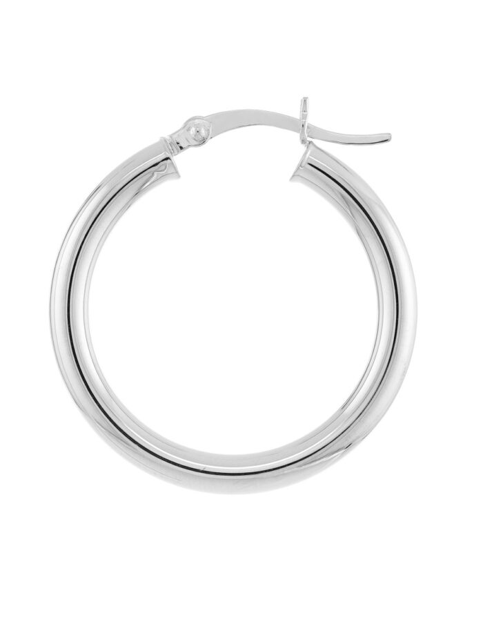 These polished hoop earrings truly radiate, and you’ll radiate confidence while wearing them. Crafted from lustrous 10k white gold, these 3mm thick hoops gracefully measure 25mm in length, adding a touch of sophistication to any look. The secure hinge clasp ensures comfortable wear. Embrace the brilliance of these stunning hoops and let your inner glow shine.