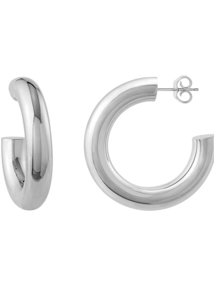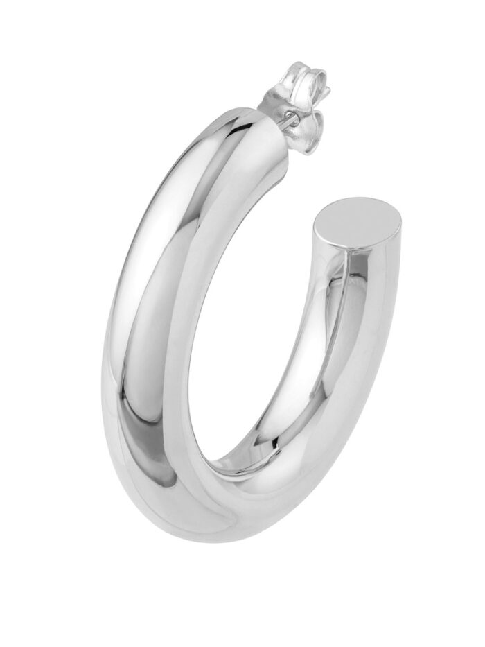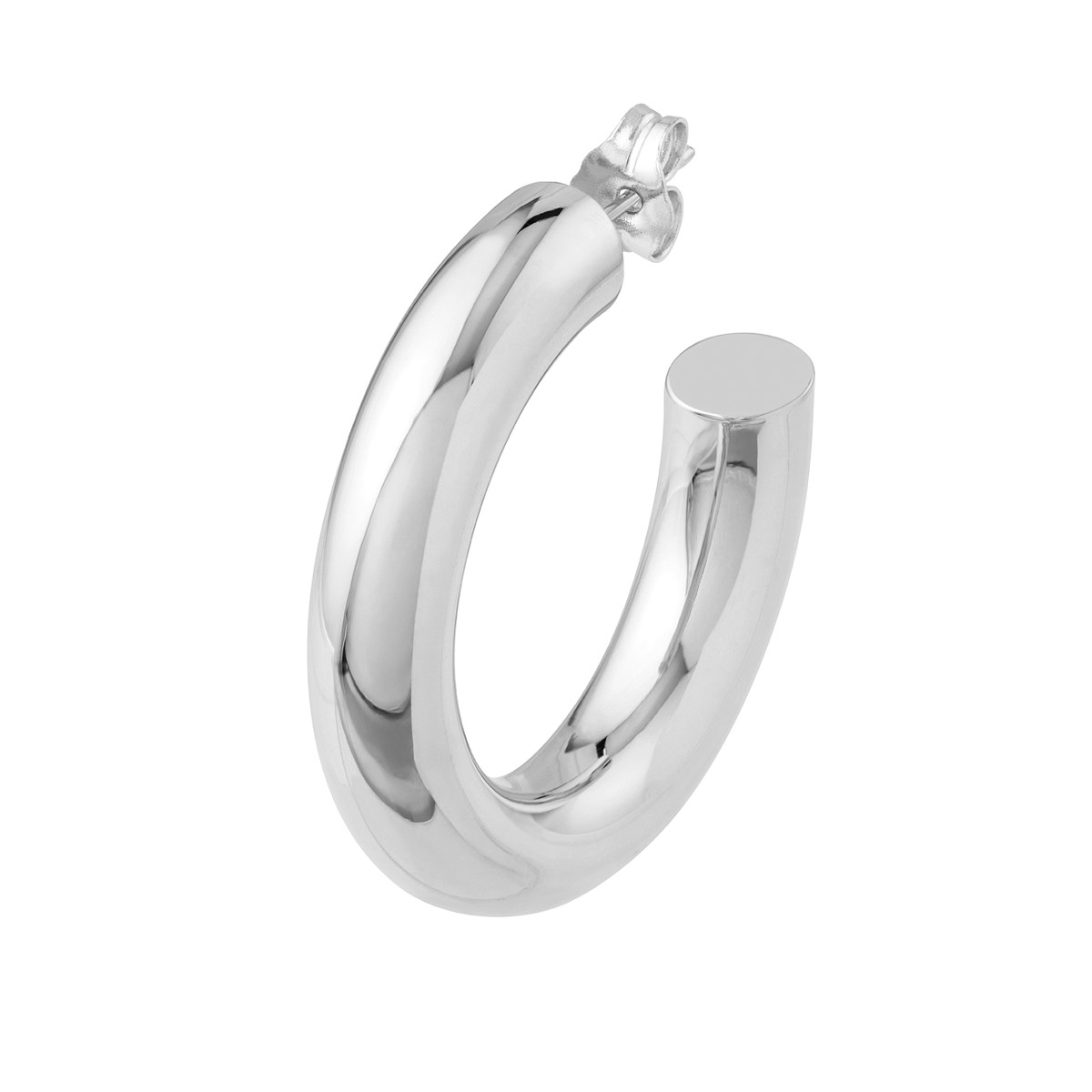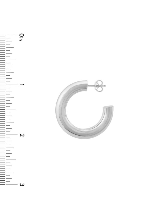 Elevate your style with these stunning 14K white gold polished open hoop earrings. These tubular hoops, measuring 6mm in width and 30mm in length, are versatile and perfect for creating a bold statement or adding a touch of elegance to your everyday look. Easily stackable, they offer endless possibilities for accessorizing.