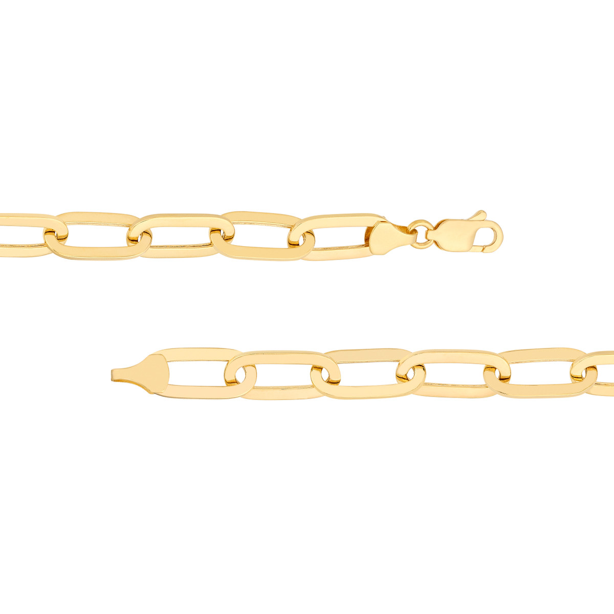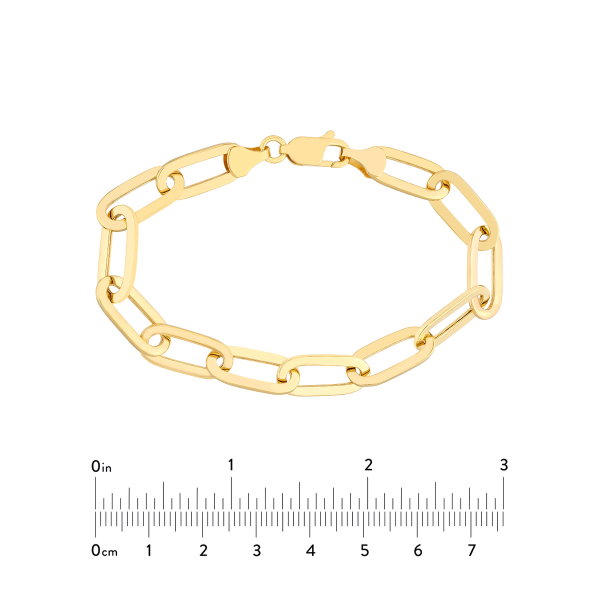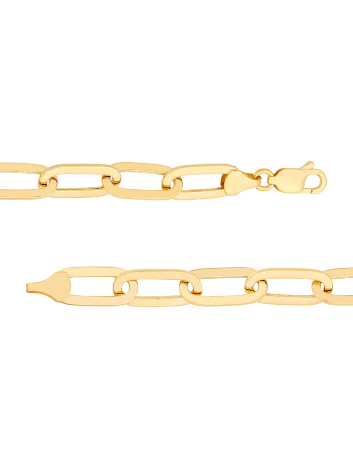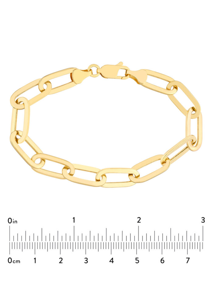This Polished Oval Link Bracelet is a timeless and elegant accessory crafted from 14K yellow gold. Its smooth, polished oval links create a sleek and sophisticated look, while the secure lobster clasp ensures a comfortable and secure fit. This hollow design adds a touch of lightness without compromising on durability.