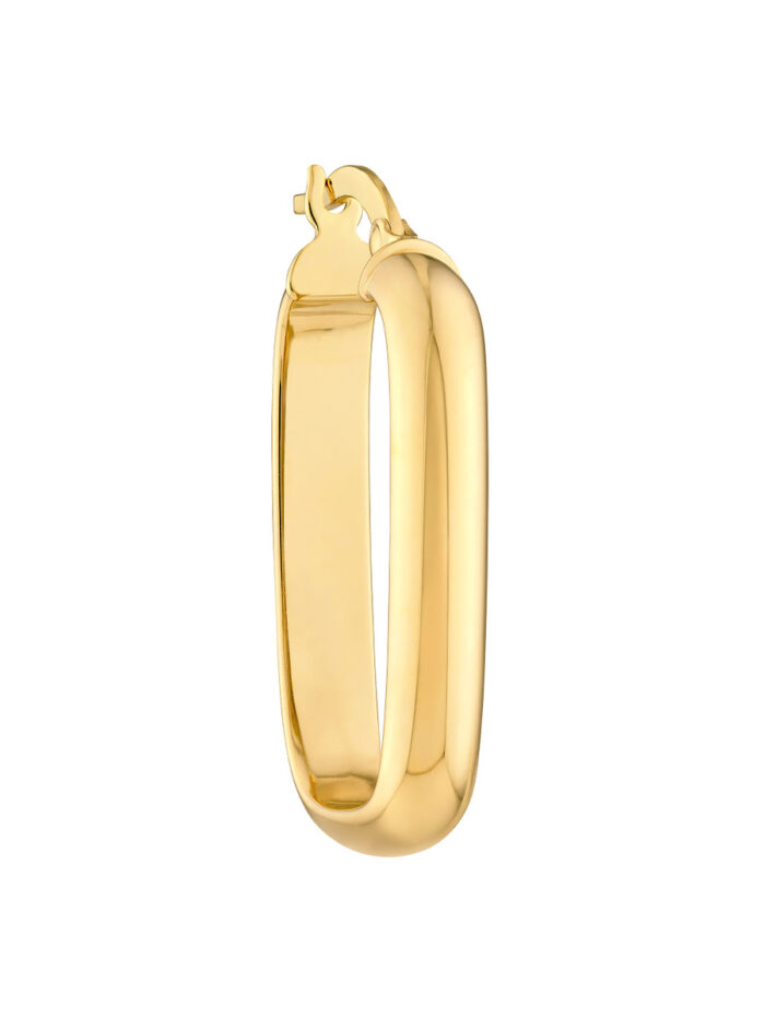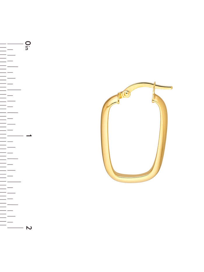 Experience contemporary chic with these Polished Rectangle Hoop Earrings. Crafted in gleaming 14K yellow gold, these earrings feature a sleek and refined rectangle shape. Their polished finish adds a touch of understated elegance, making them perfect for adding a subtle yet stylish accent to your look.