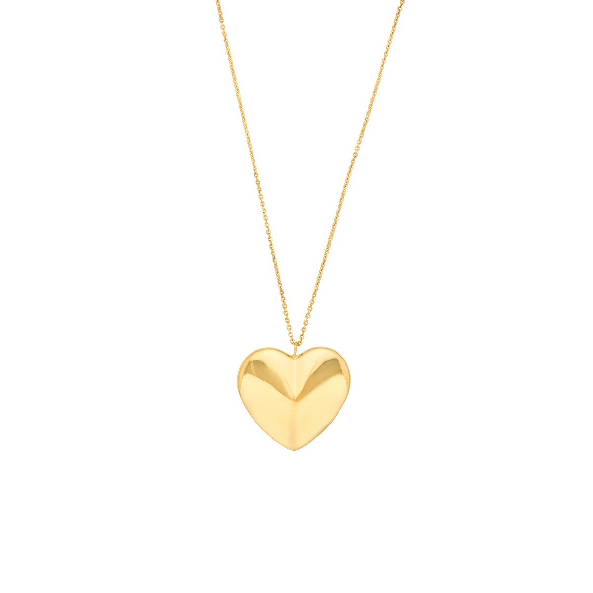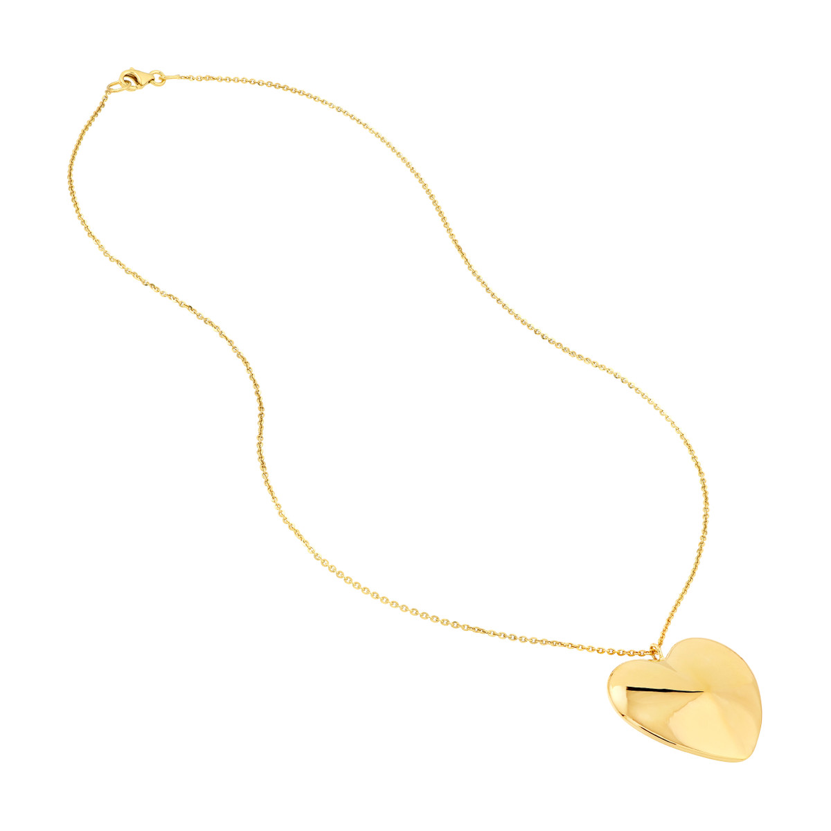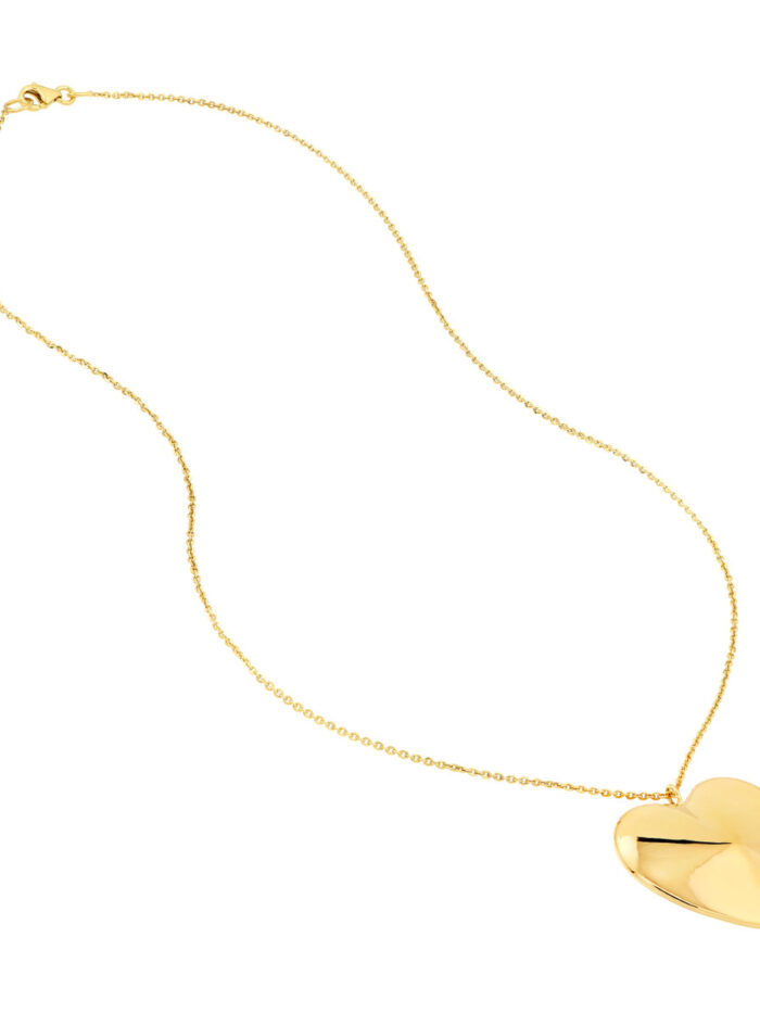 Express your love with this beautiful Puff Art Large Heart Pendant Necklace. Crafted from lustrous 14K yellow gold, this pendant features a unique, three-dimensional heart design that captures the eye. The necklace hangs gracefully on an elegant cable chain, measuring 18 inches in length, and secures with a lobster clasp for a secure and comfortable fit.