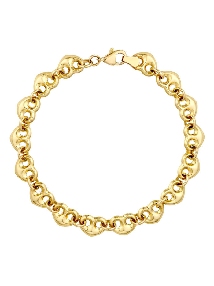 Make a statement with our charming Puff Mariner Heart Bracelet. Crafted from gleaming 14K yellow gold, this bracelet features a beautifully sculpted heart design with a unique puff texture, adding a touch of elegance. The secure pear-shape lobster clasp ensures a comfortable and secure fit. With its delicate yet eye-catching design, this bracelet is a perfect addition to any wrist stack or a thoughtful gift for someone special.