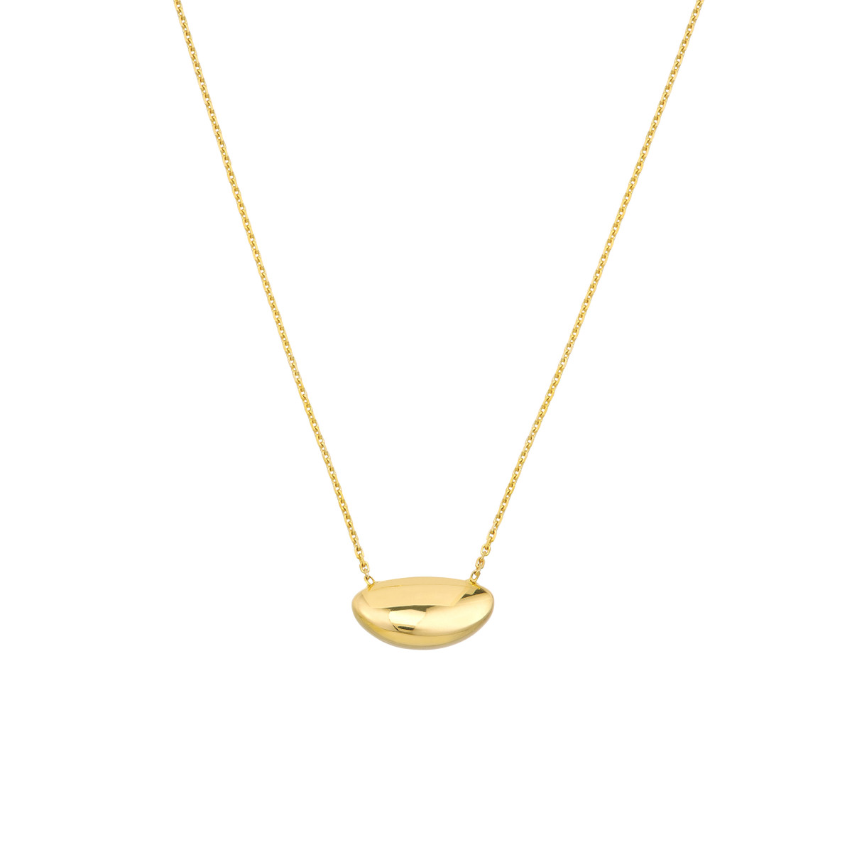 Make a statement with our unique Puffy Nut Shape Adjustable Necklace. This piece skillfully blends classic and modern design elements, featuring a 14K yellow gold puffy nut-shaped pendant. The pendant hangs from a sleek link chain, adding a touch of sophistication to your ensemble. Adjustable from 18 inches, this necklace offers a personalized fit for every style.