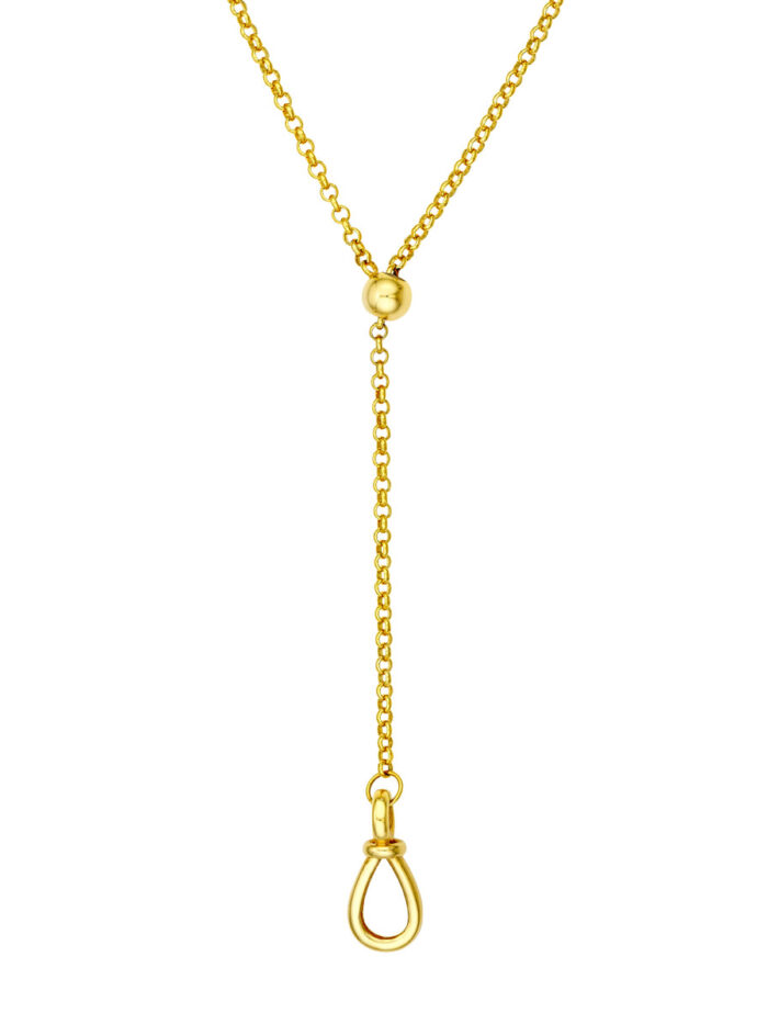 Embrace effortless style with the Pull Over Rolo Lariat Necklace. This necklace features a classic rolo chain design, creating a timeless and elegant look. The 1.9mm thickness adds a touch of subtle sophistication. The silicon bead closure ensures a secure and comfortable fit. Its adjustable 24.5-inch length allows for versatility, making it perfect for both everyday wear and special occasions.