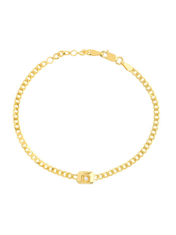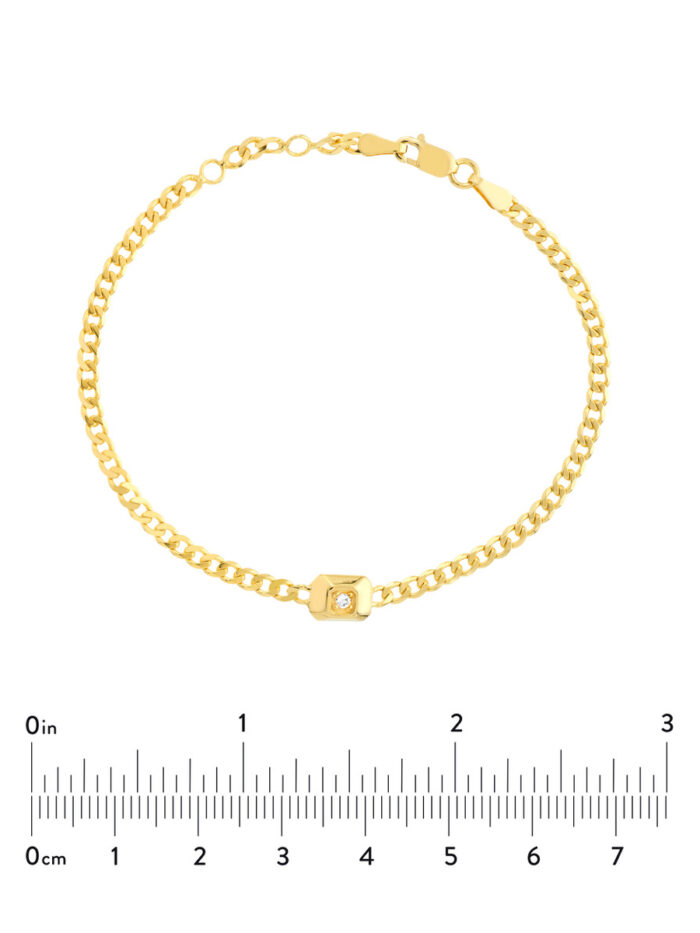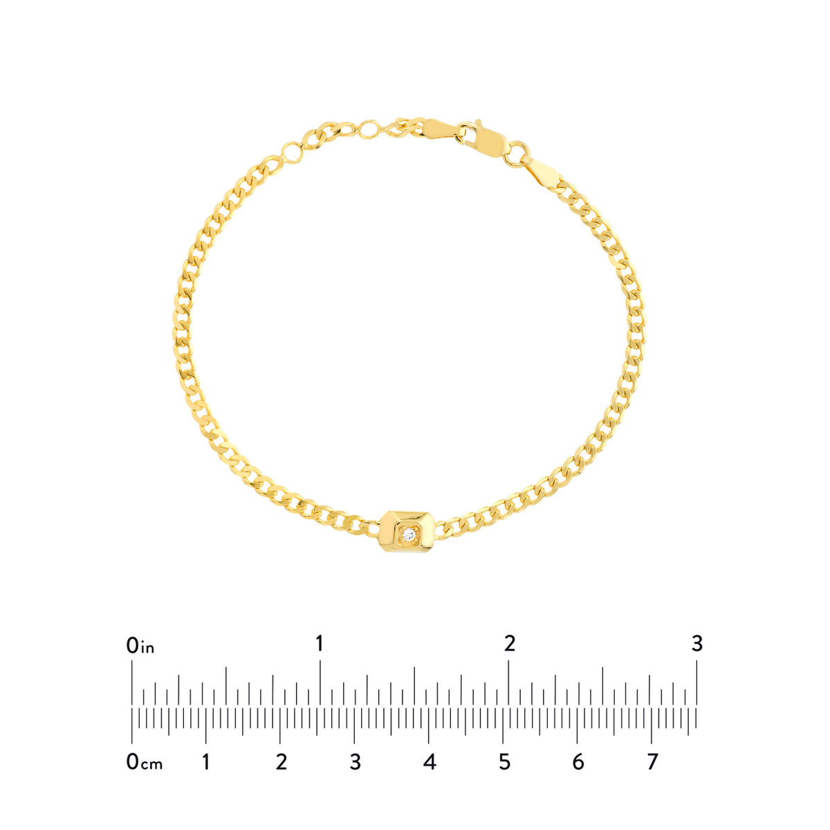 Add a touch of elegance to your wrist with the Dazyle Raised Diamond on Curb Chain Adjustable Bracelet. This stunning piece features a classic curb chain adorned with delicate raised diamond accents, creating a subtle yet eye-catching sparkle. The adjustable lobster clasp ensures a comfortable fit, while the 14K yellow gold construction promises lasting shine.