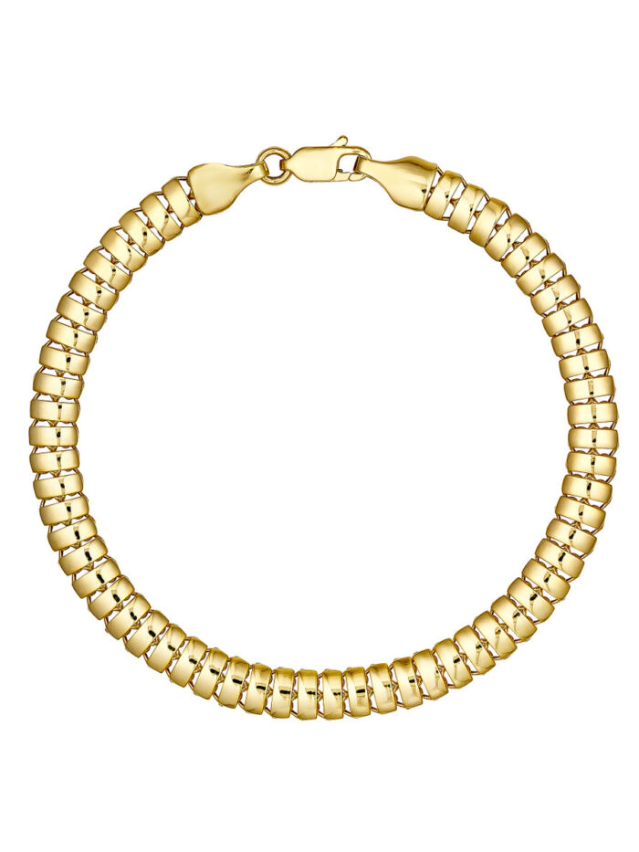 Elevate your wrist game with the sleek and modern Rectangular Link Bracelet. Crafted from lustrous 14K yellow gold, this bracelet features a series of interconnected rectangular links that create a sophisticated geometric pattern. The secure lobster clasp ensures a comfortable and confident fit. Whether you’re dressing up or keeping it casual, this bracelet adds a touch of timeless elegance to any ensemble.