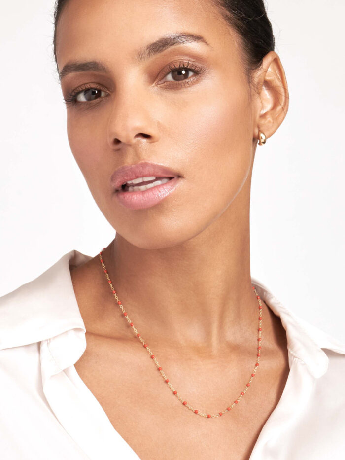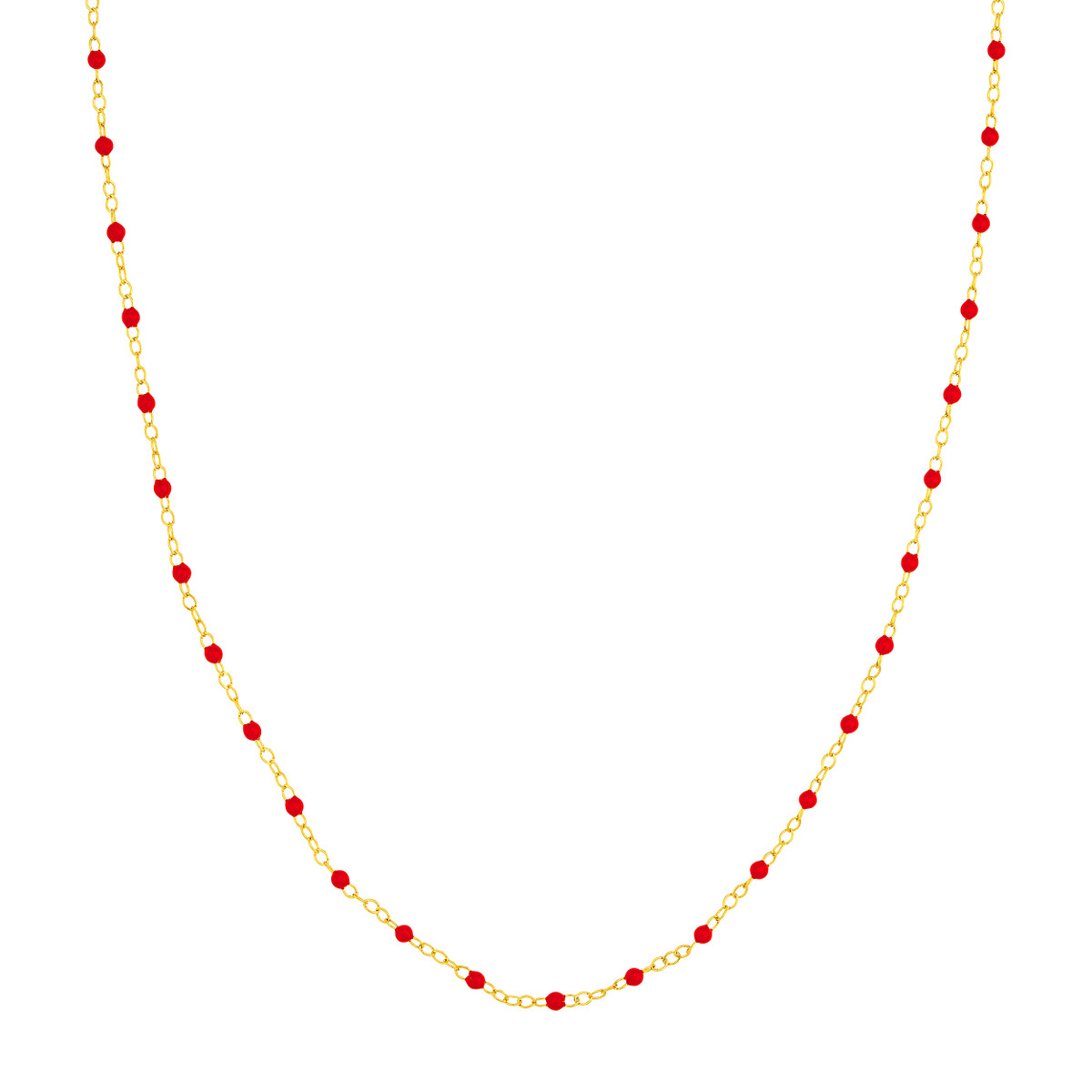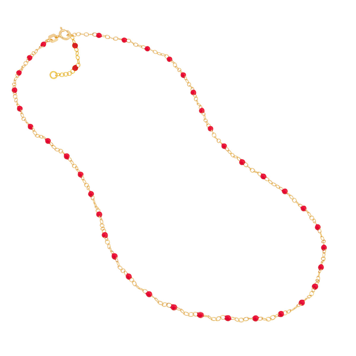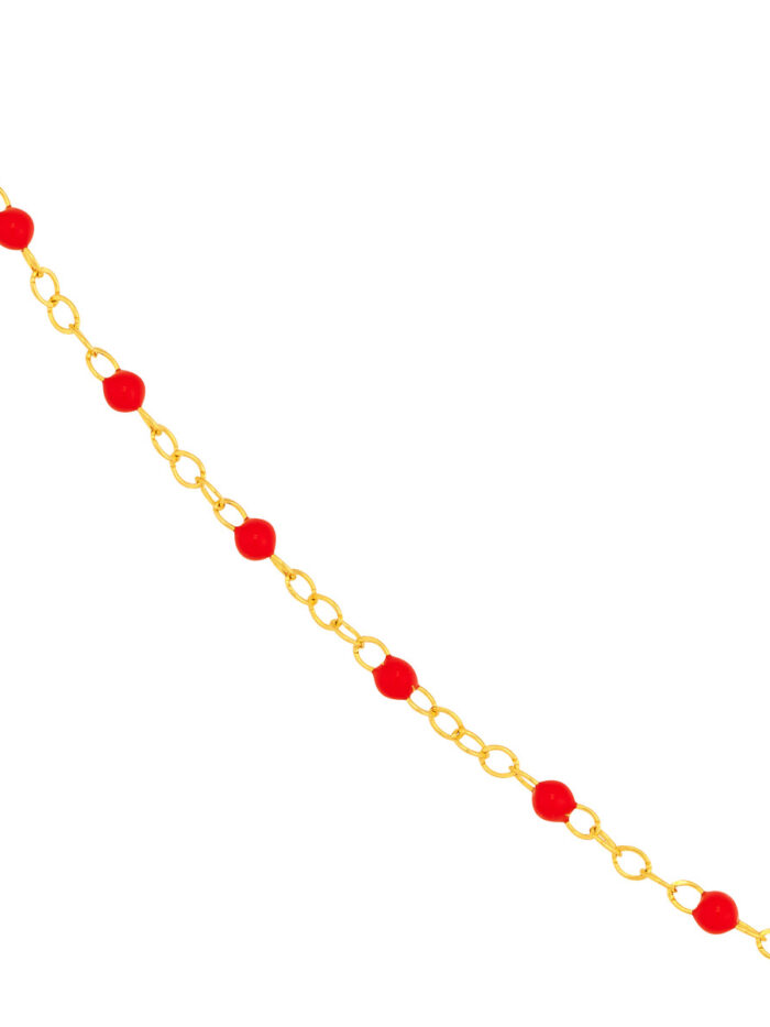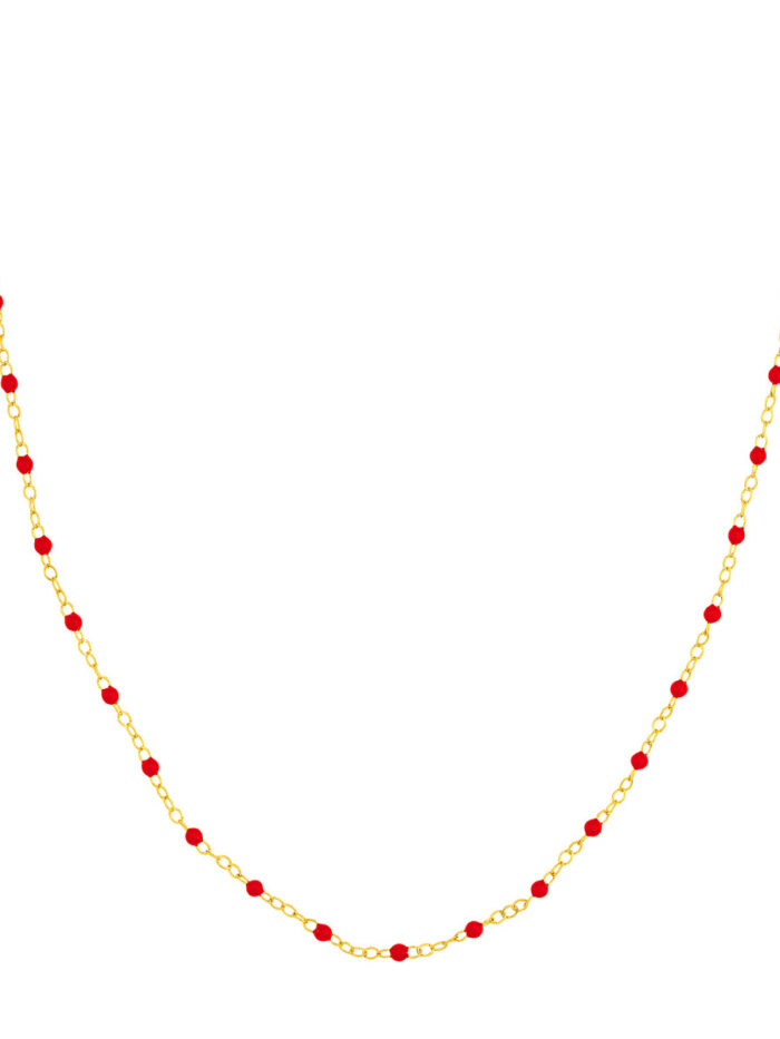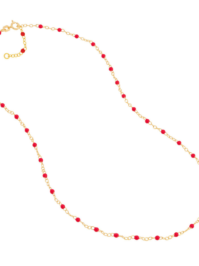 Add a pop of vibrant color to your look with this stunning red enamel bead piatto chain from our Color Romance Collection. Crafted from luxurious 14K yellow gold, this chain features intricately placed red enamel beads, creating a unique and eye-catching design. Its 1-inch adjustable length ensures a comfortable and personalized fit, while the secure spring ring closure provides peace of mind. This chain is the perfect way to elevate any outfit, adding a touch of elegance and playfulness.