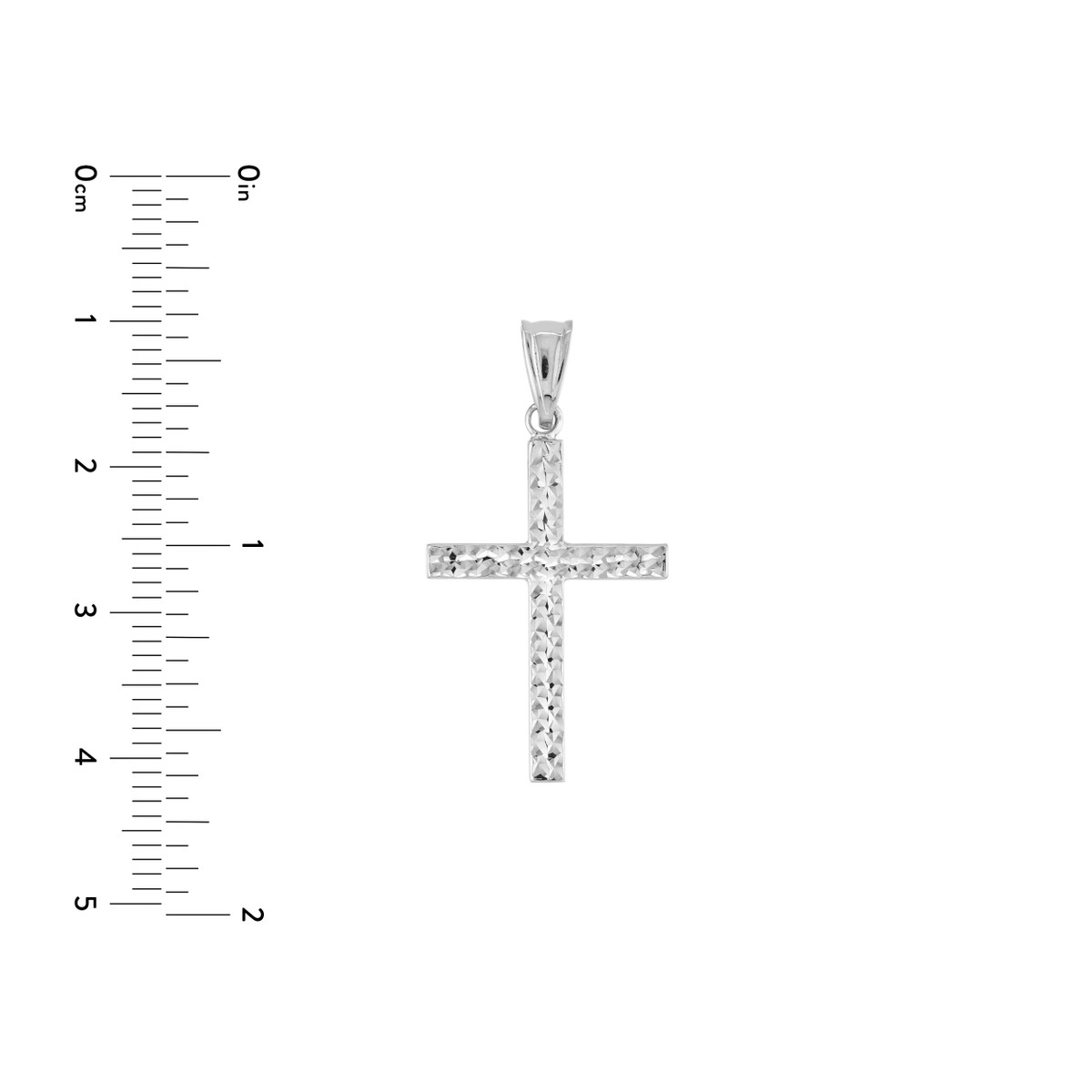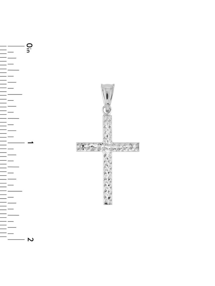 This versatile reversible pendant lets you showcase two distinct looks in one! One side features a classic high-polished cross, while the other boasts a shimmering diamond-cut design. Crafted from luxurious 14K white gold, this pendant is a perfect way to express your personal style. Ideal for religious holidays or any special occasion, it makes a thoughtful and unique gift.