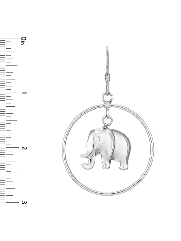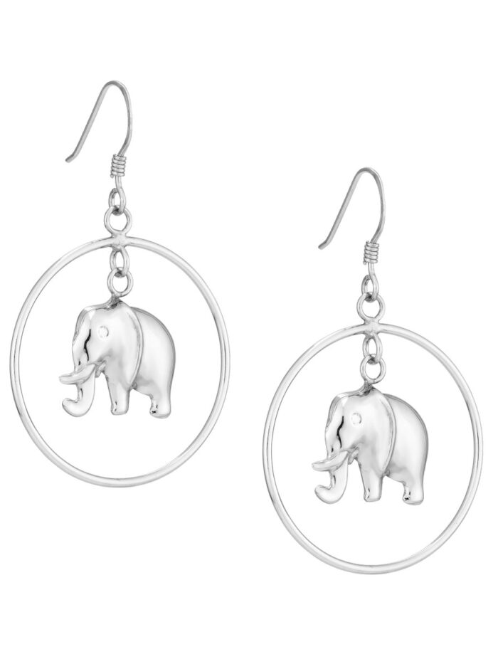 Embrace timeless elegance with these rhodium-plated sterling silver elephant hoop earrings. The open circle design featuring an intricate elephant motif adds a touch of charm and personality. Crafted from durable sterling silver and secured with a fish hook closure, these earrings are a perfect way to add a statement touch to your everyday look.