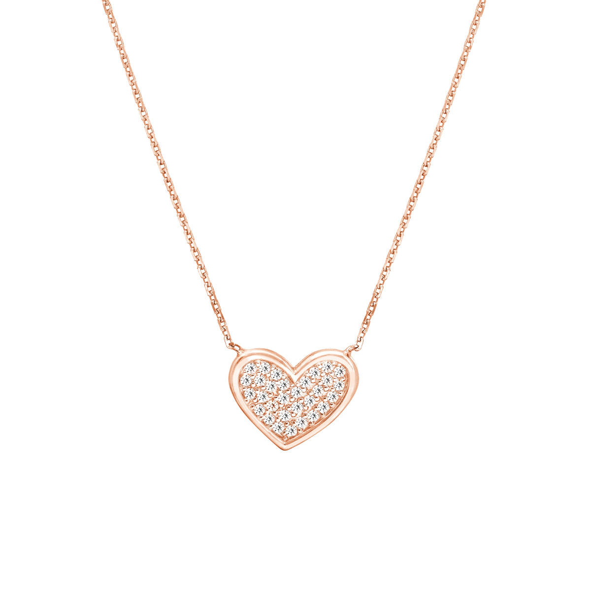 Embrace elegance with this Rose Gold Plated Sterling Silver CZ-Filled Heart Adjustable Necklace. The shimmering heart pendant, infused with sparkling CZ stones, exudes a timeless allure. The rose gold plating adds a touch of warmth and sophistication, complementing a variety of skin tones. Crafted from Sterling Silver and plated with durable rose gold, this necklace is a testament to quality and style. Its adjustable chain ensures a perfect fit.