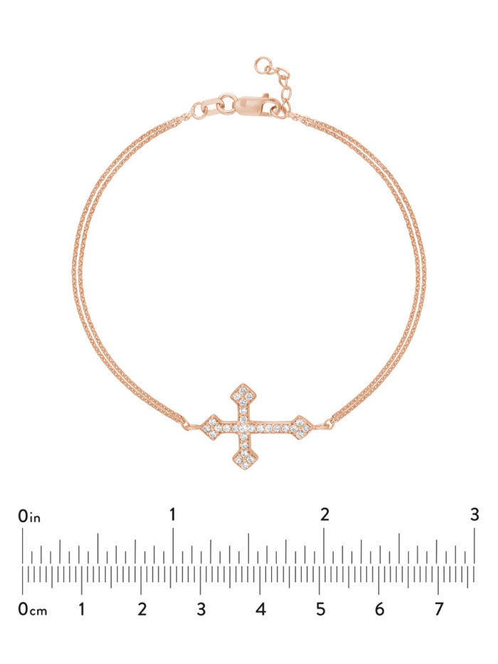 Rose Gold Plated Sterling Silver Sideways CZ Cross Bracelet – Adjustable – by Dazyle