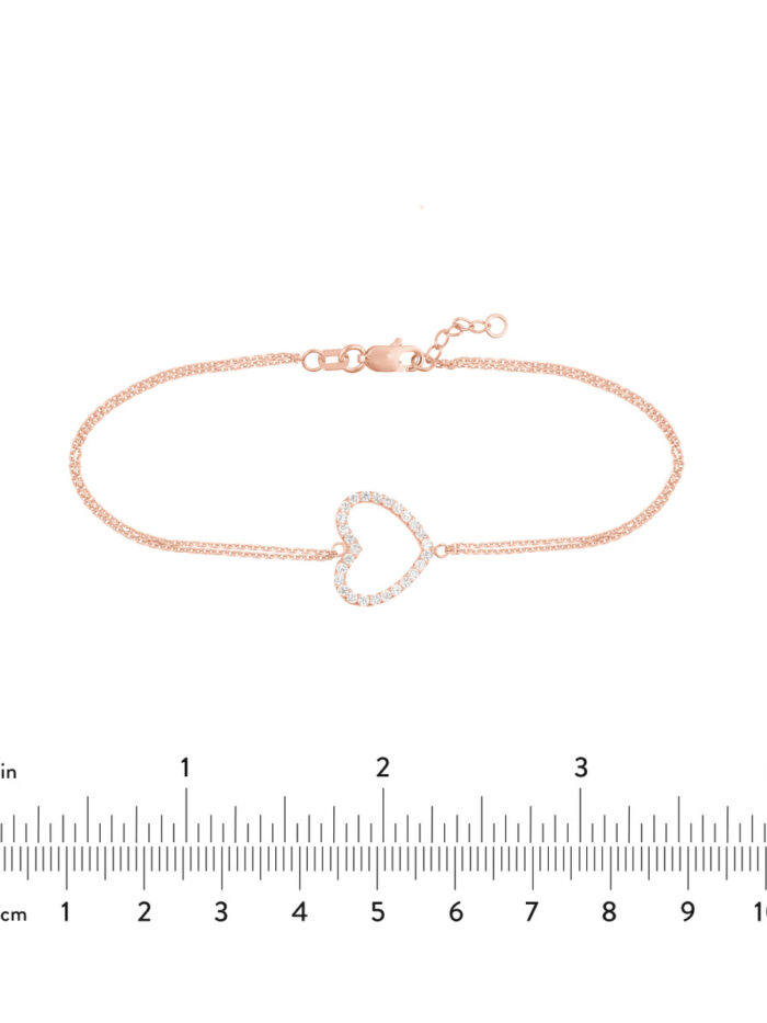 Rose Gold Plated Sterling Silver Sideways Heart Bracelet with CZ Accent – Adjustable Cable Chain – 7.5 Inch – by Dazyle