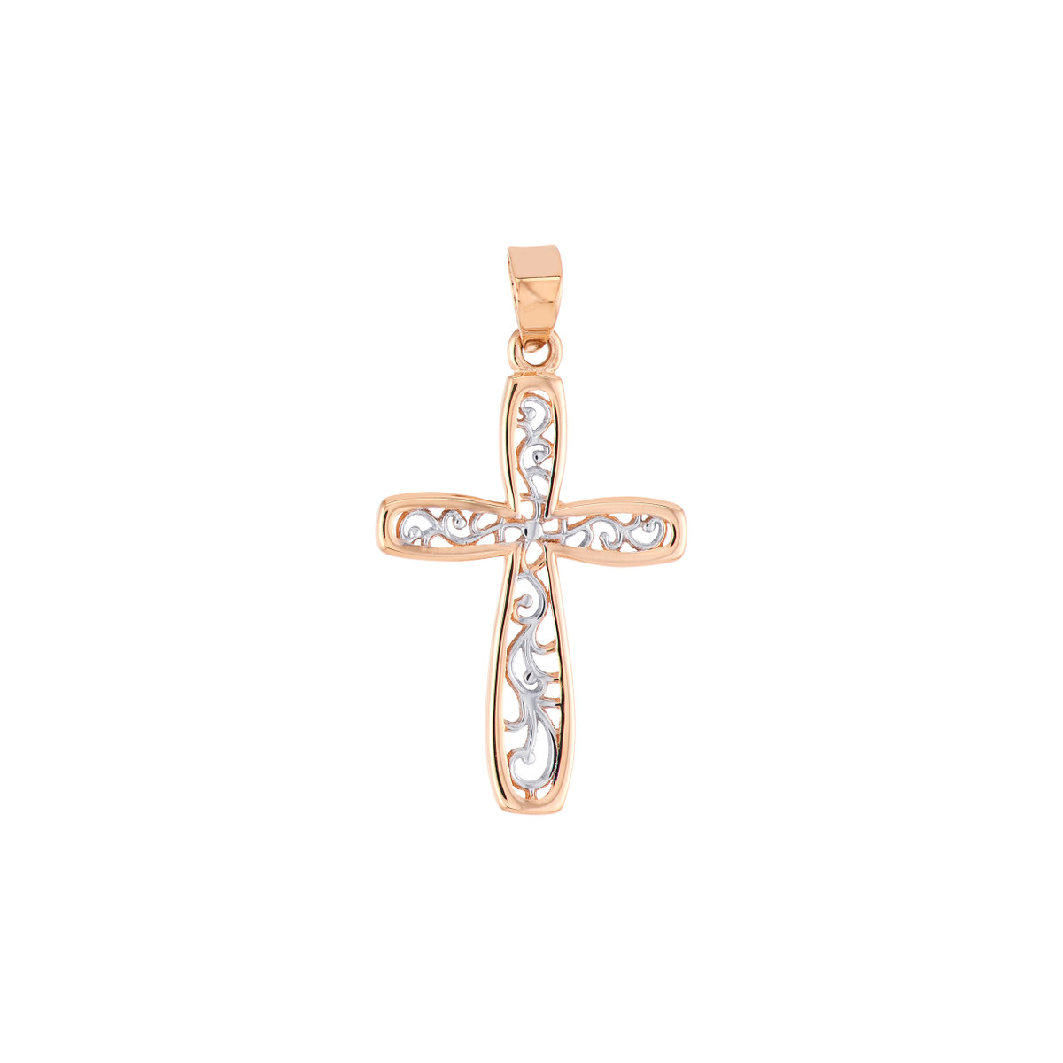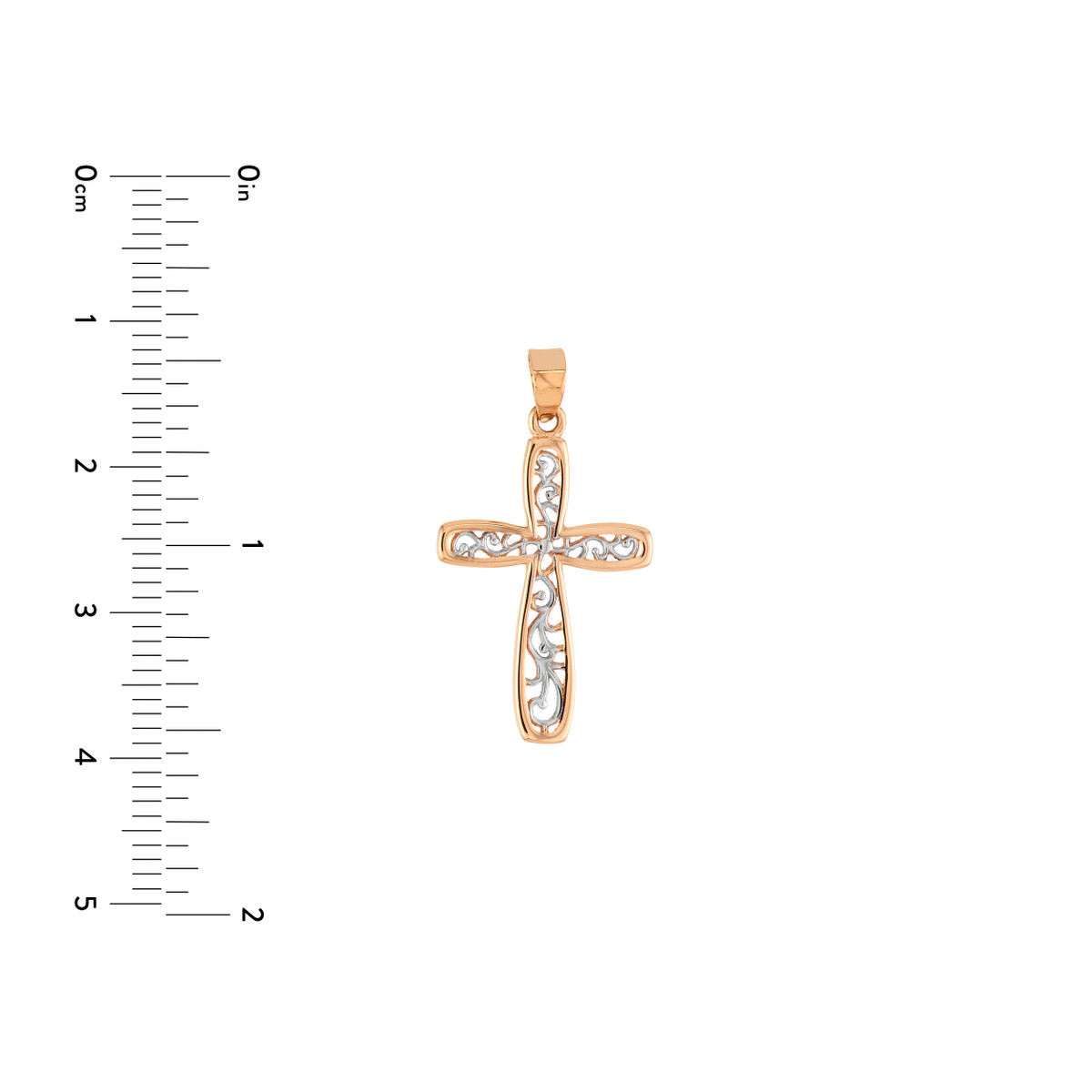 This delicate vine cross pendant is a stunning example of craftsmanship. Crafted from 14K rose and white gold, it features a dainty framed design that captures both elegance and grace. It makes a thoughtful and meaningful gift for any occasion, especially religious holidays and celebrations.