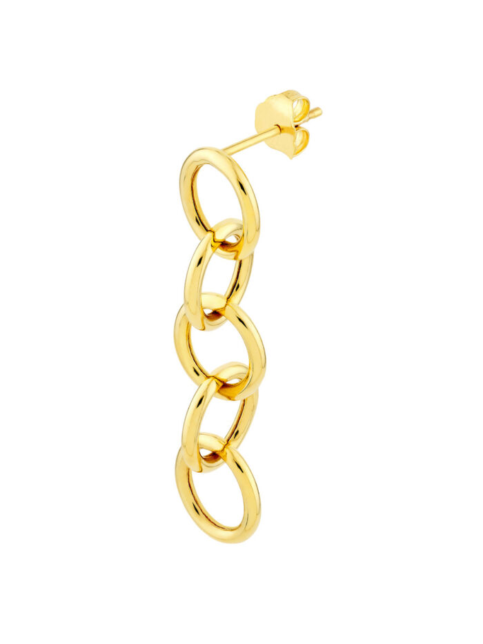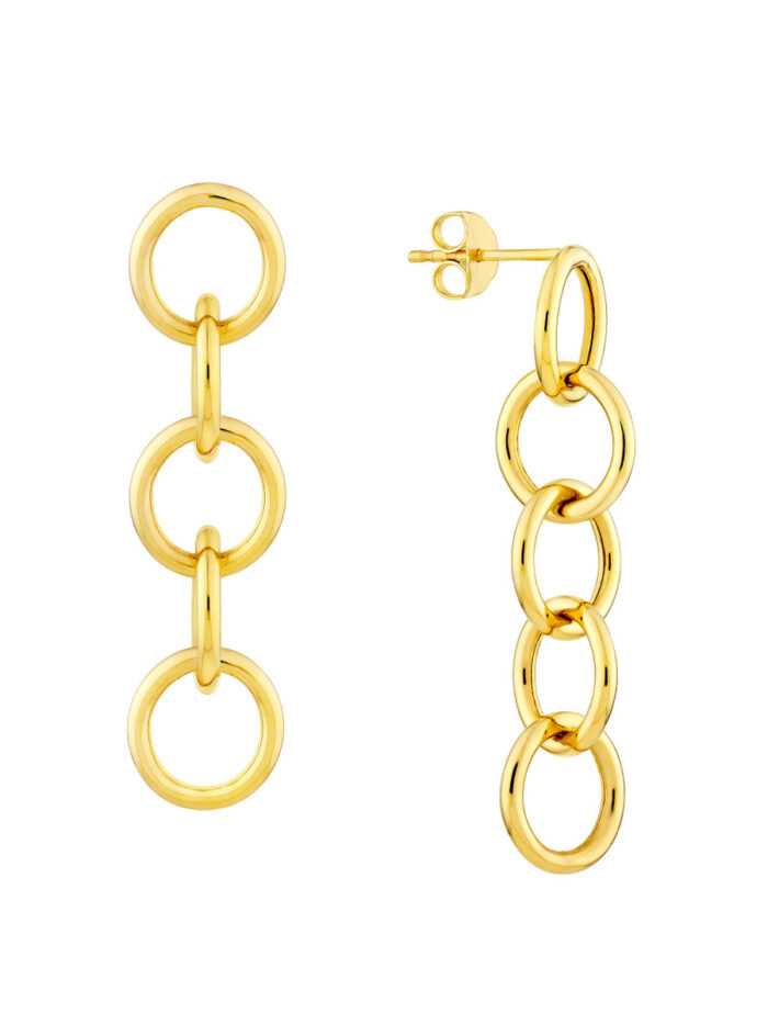 Add a touch of timeless elegance to your ear stack with these stunning Round Endless Link Dangle Earrings. Crafted from solid 14K yellow gold, these earrings feature a delicate chain of round endless links that gracefully dangle from the earlobe. The earrings secure with a secure post and nut closure, ensuring a comfortable and lasting wear.