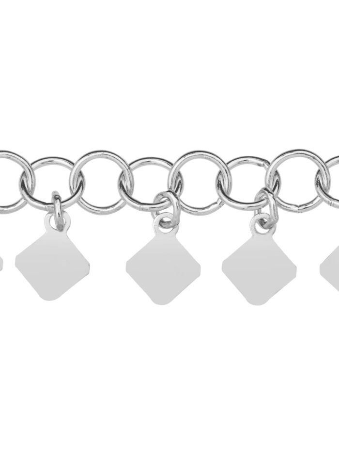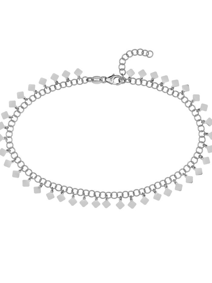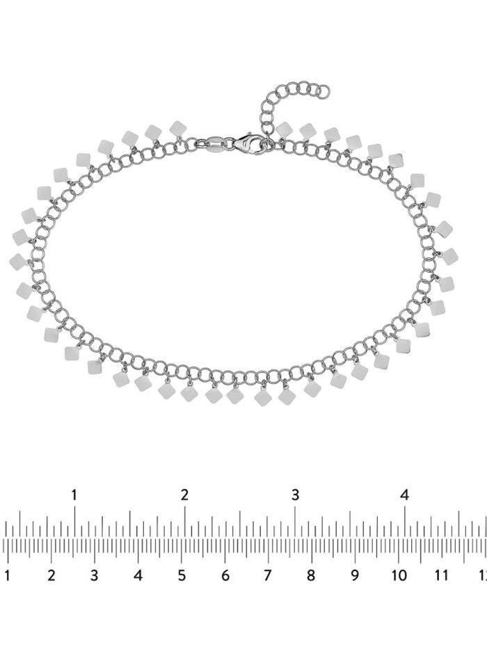 Add a touch of sparkle to your summer style with this delicate Round Link Hanging Rhombus Anklet. Crafted from rhodium-plated sterling silver, it features a chain of round links adorned with eye-catching hanging rhombus elements. The adjustable 1-inch extender allows for a personalized fit, ensuring a comfortable and secure wear.