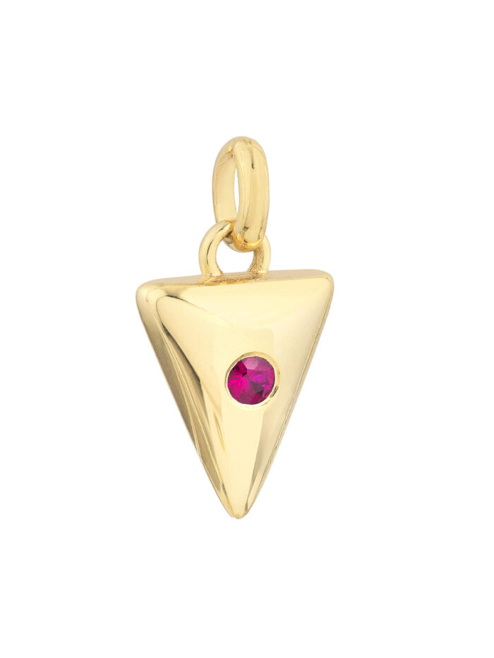 The Ruby Arrow Pendant is perfect for those who appreciate a blend of modern design and classic charm. This chic pendant features a vibrant ruby set in a stylish arrow shape, adding a touch of sophistication to any ensemble. Crafted in lustrous 14K yellow gold, this pendant is designed to elevate any chain, making it the perfect statement piece for everyday wear or special occasions. The secure bail closure ensures a comfortable and secure fit.