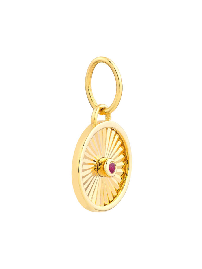 Embrace timeless elegance with the Ruby Radiant Round Pendant. This captivating pendant features a vibrant ruby, symbolizing passion and love. Crafted in lustrous 14K yellow gold, it makes a statement of enduring beauty.