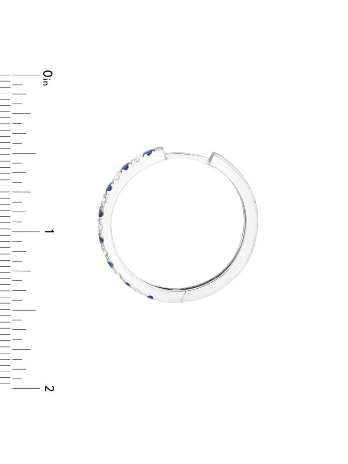 Elevate your style with these stunning Sapphire & Diamond Hoop Earrings. Featuring a captivating combination of 2mm sapphires and 3/8tcw diamonds, these 25mm hoops are crafted in luxurious 14K white gold. The vibrant sapphires and shimmering diamonds create a mesmerizing interplay of color and brilliance, adding a touch of elegance to any occasion.