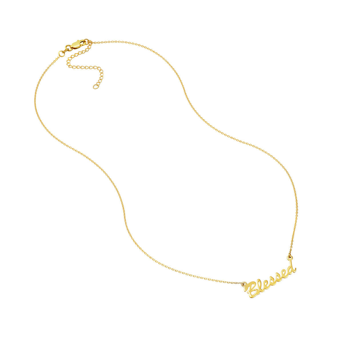 Carry your faith close to your heart with this elegant Script Blessed Adjustable Necklace. Crafted from lustrous 14K yellow gold, the pendant features a beautifully scripted “Blessed” design, serving as a constant reminder of your values. The adjustable cable chain allows for a personalized fit, while the secure lobster claw closure ensures the necklace stays safely in place.