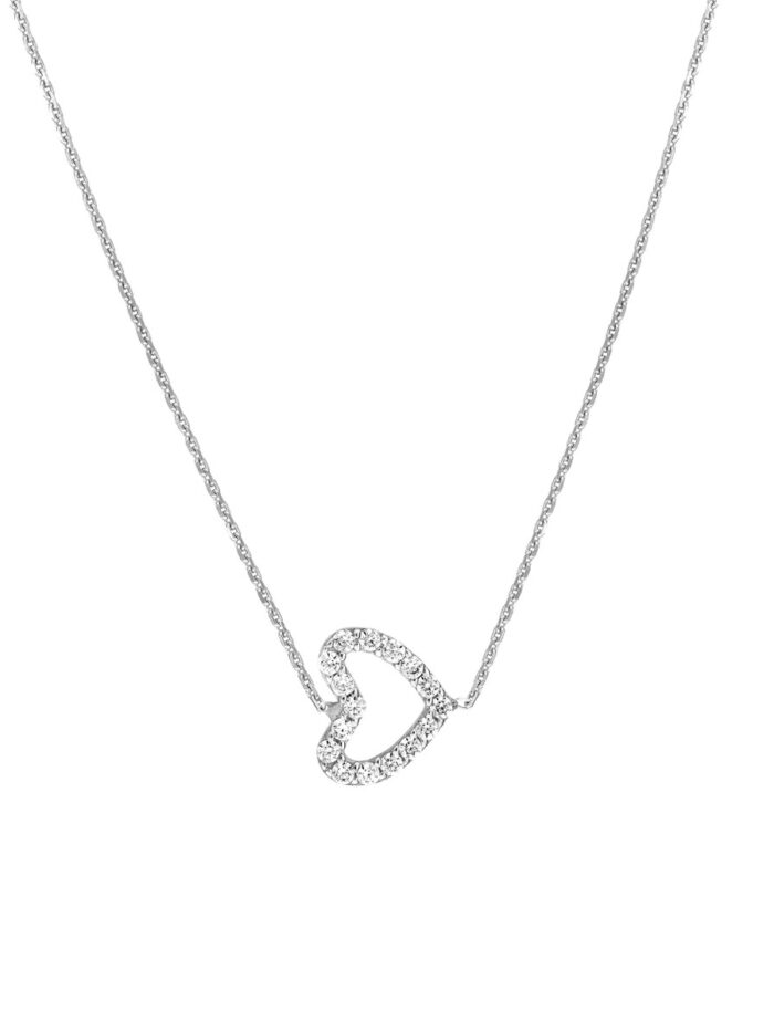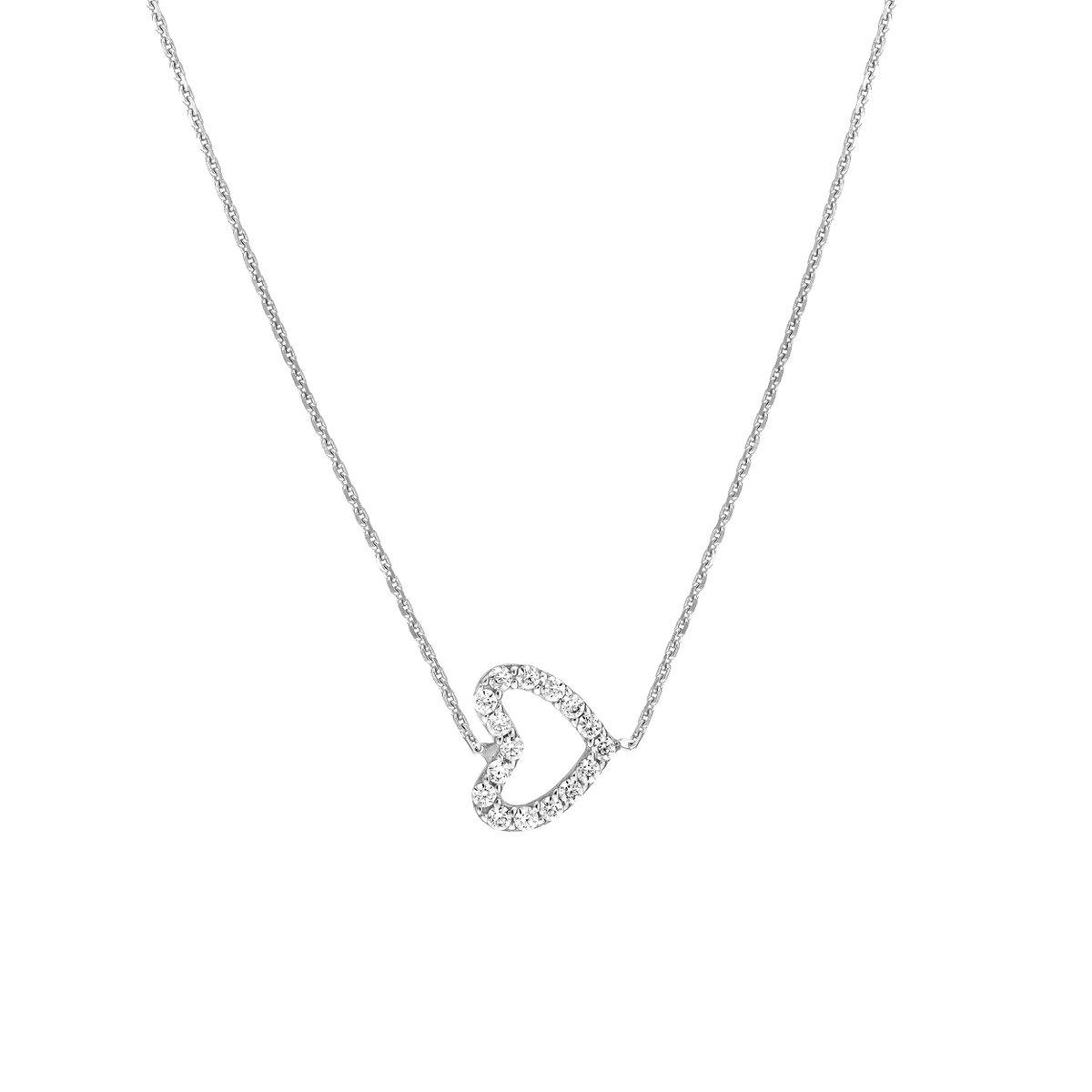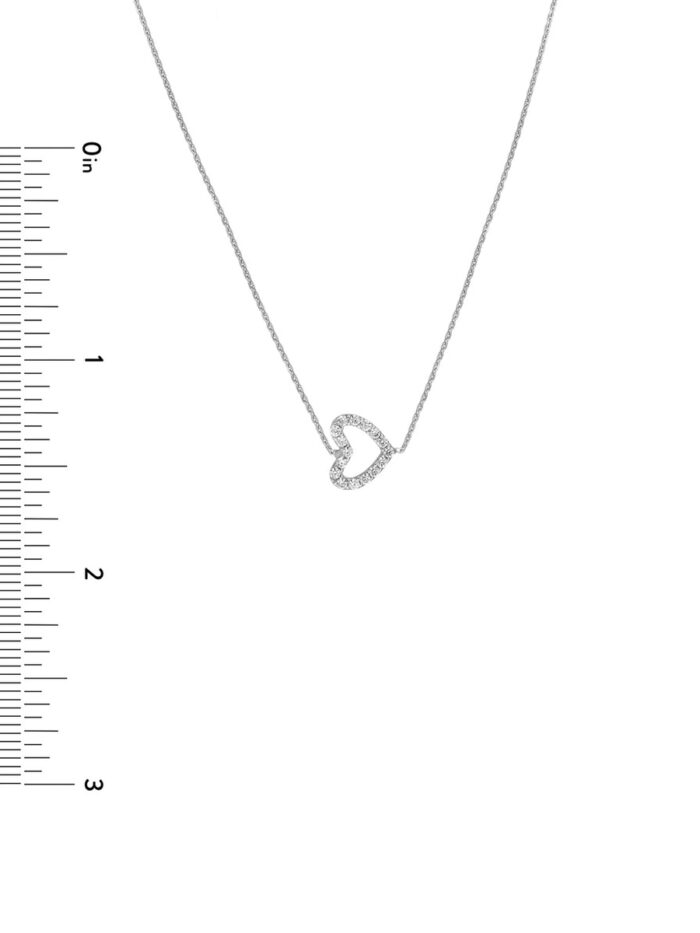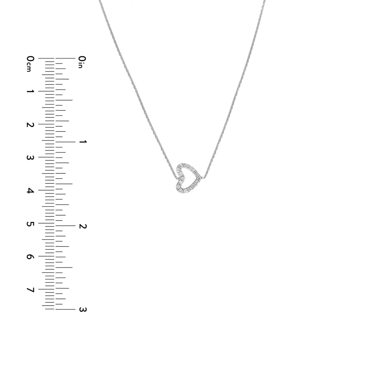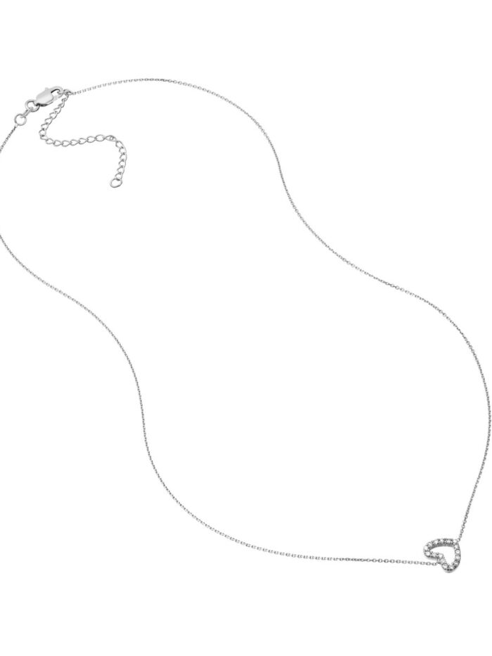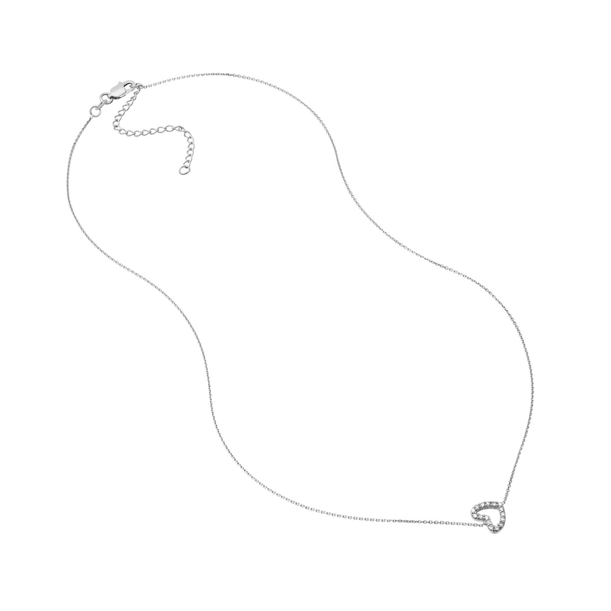 Wear your heart on your sleeve with this delicate sideways mini CZ heart necklace. Crafted from sterling silver and featuring a charming open heart design, this pendant is accented with sparkling CZ stones. It hangs gracefully from an 18-inch adjustable cable chain, allowing for a perfect fit. Choose from rhodium, yellow gold, or rose gold plating to express your unique style.