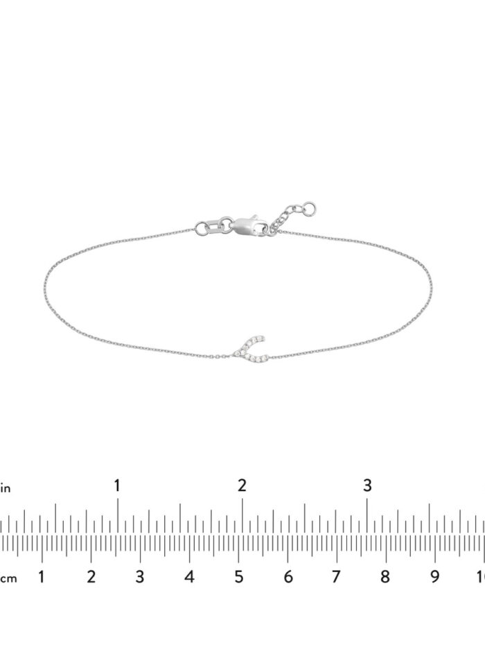 Embrace good fortune with this dainty sideways mini CZ wishbone bracelet. Crafted from sterling silver and plated in rhodium, yellow gold, or rose gold, this bracelet features a sparkling CZ accent and a secure lobster clasp closure. The adjustable length allows for a personalized fit, making it a perfect addition to any jewelry collection.