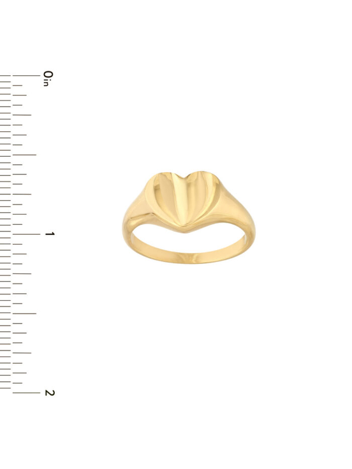 The chic and effortless Mini Heart Signet Ring is crafted in luxurious 14K yellow gold. This delicate piece features a timeless heart design, perfect for adding a touch of understated elegance to any look. Available in sizes 6, 7, and 8, this ring is a beautiful and versatile addition to your jewelry collection. It’s crafted to stand alone and make a subtle yet impactful statement.