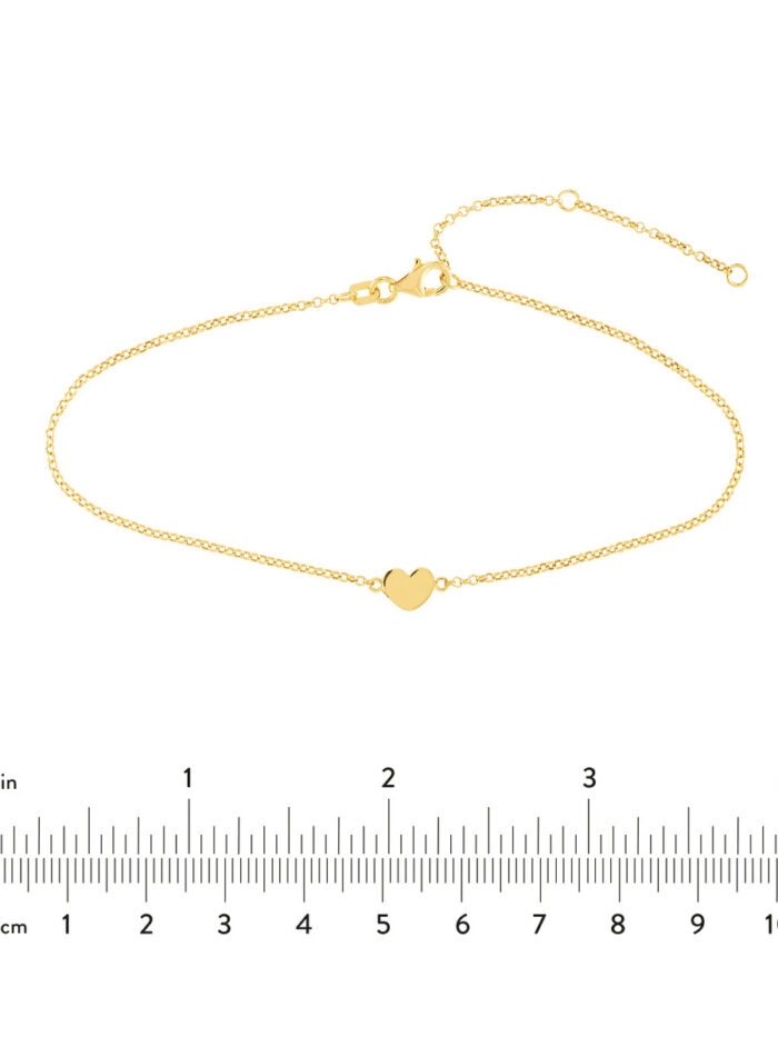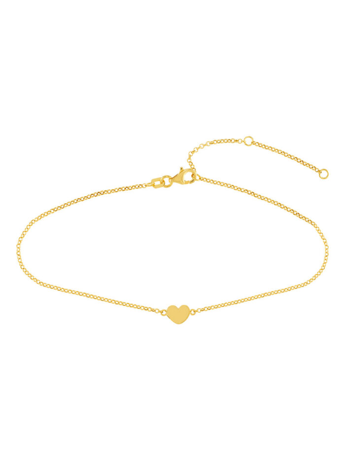 Express your love for all things dainty with our Simple Mini Heart Anklet. Crafted in 14K yellow gold, this anklet features a charming miniature heart charm, symbolizing love and affection. The adjustable rolo chain (9 to 10 inches) ensures a comfortable fit, while the secure pear-shaped lobster clasp keeps it securely in place.