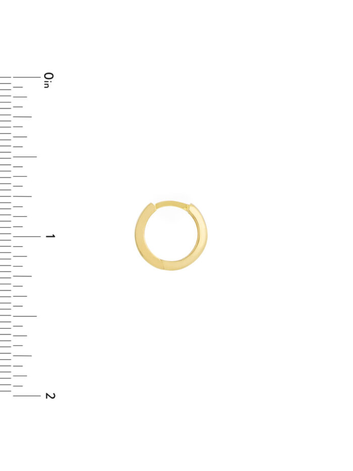 These small huggie earrings are a timeless classic, crafted from 14K yellow gold and measuring 2.05mm X 11.15mm. The snap-lock clasp ensures a secure and comfortable fit. Dress them up or down for a versatile look.