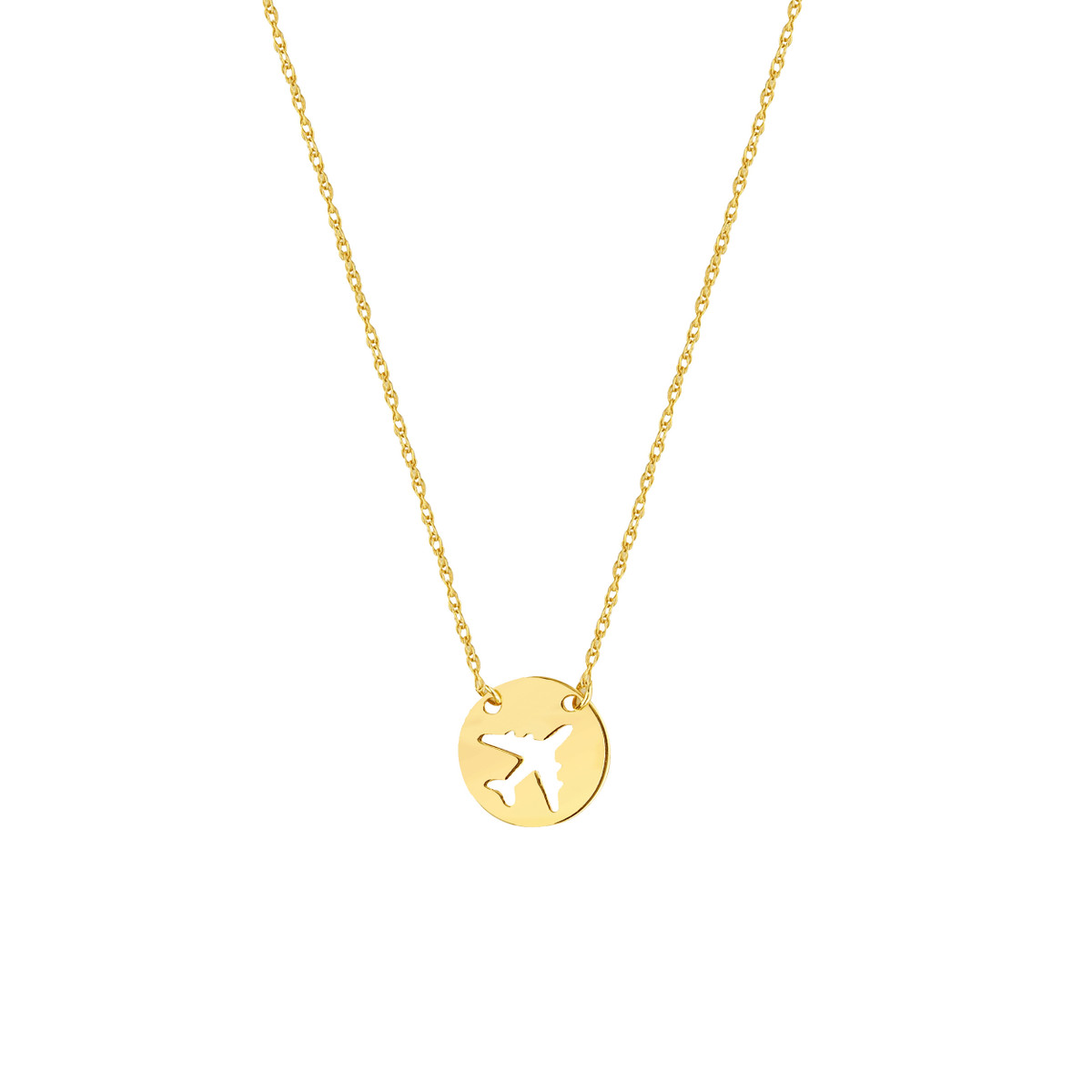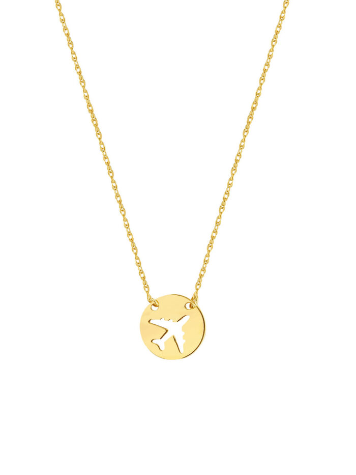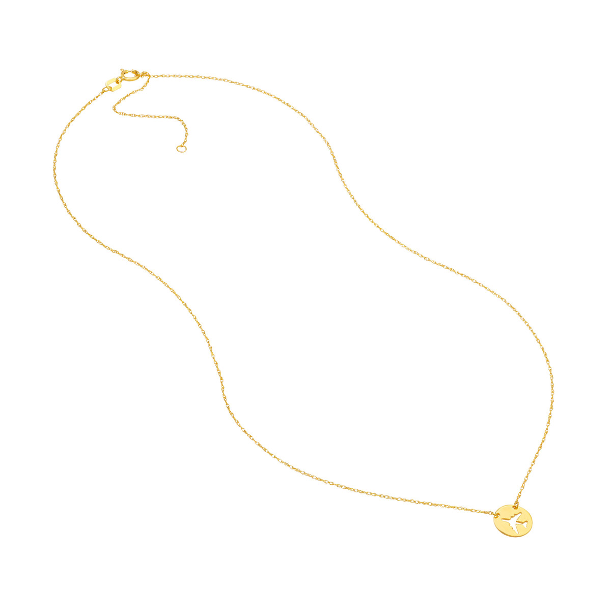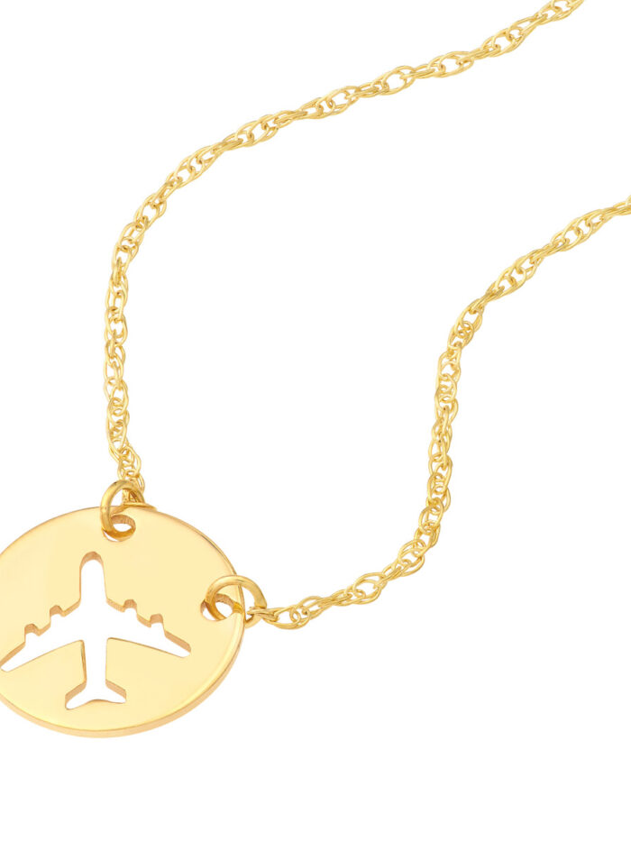 Capture the wanderlust with the So You Cutout Airplane Mini Disc Adjustable Necklace. This charming 14K yellow gold necklace features a 9mm disc with a whimsical airplane cutout. The adjustable cable chain ensures a personalized fit, making it a delightful accessory for the travel enthusiast.