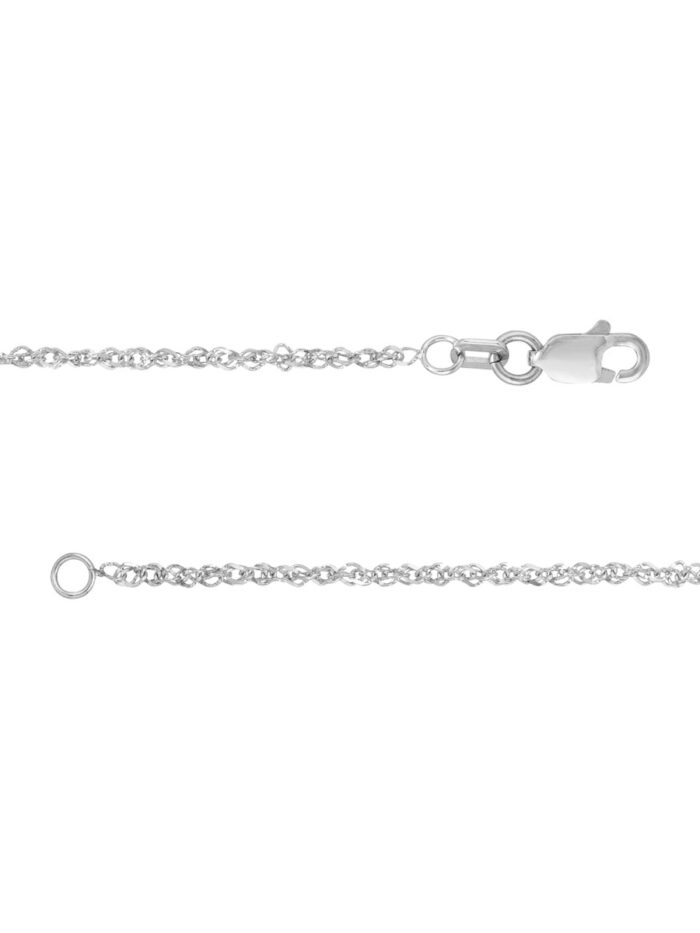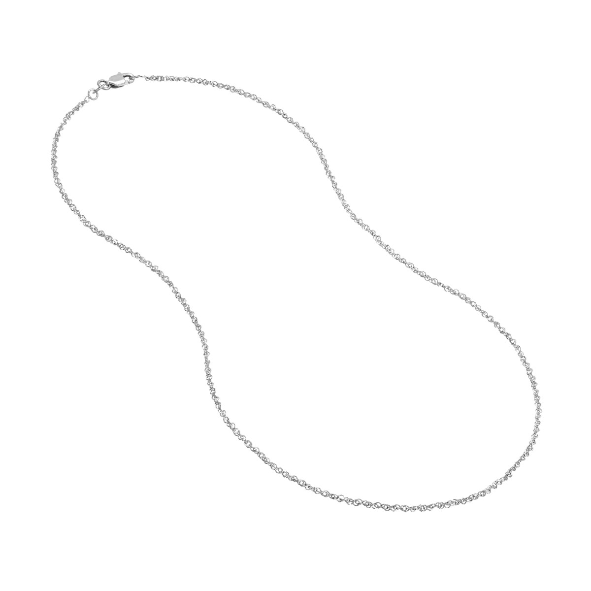Elevate your style with this dazzling Sparkle Singapore Chain crafted from luxurious 14K white gold. The 1.5mm thickness adds a touch of boldness, while the classic Singapore chain design exudes timeless elegance. The secure lobster closure ensures a comfortable and confident fit.